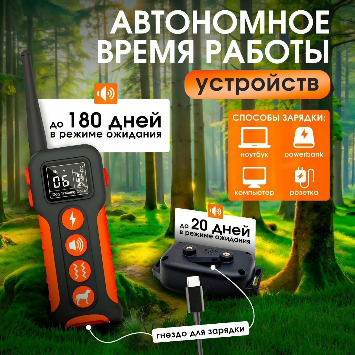 Электронный ошейник для дрессировки собак. Водонепроницаемый, оранжевый