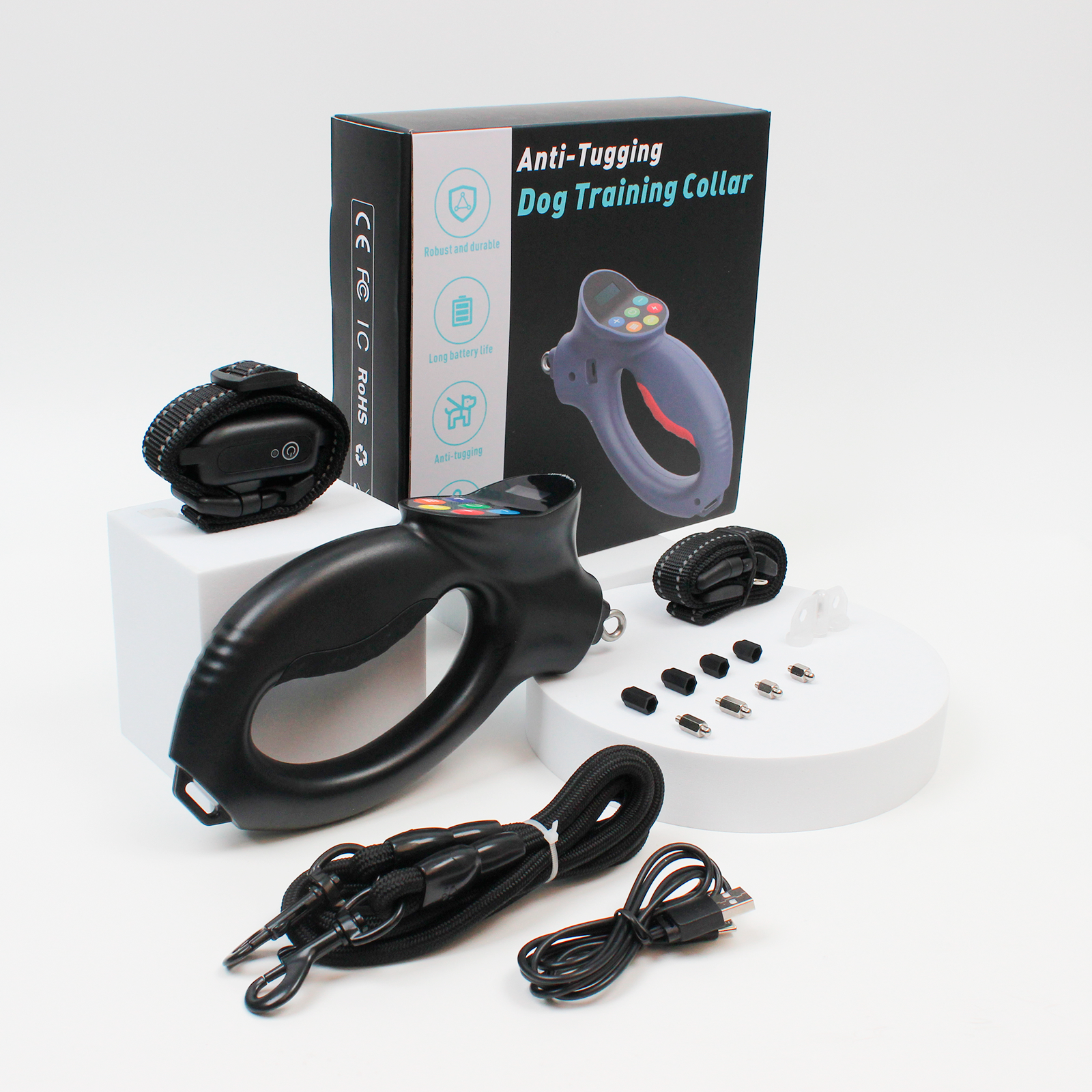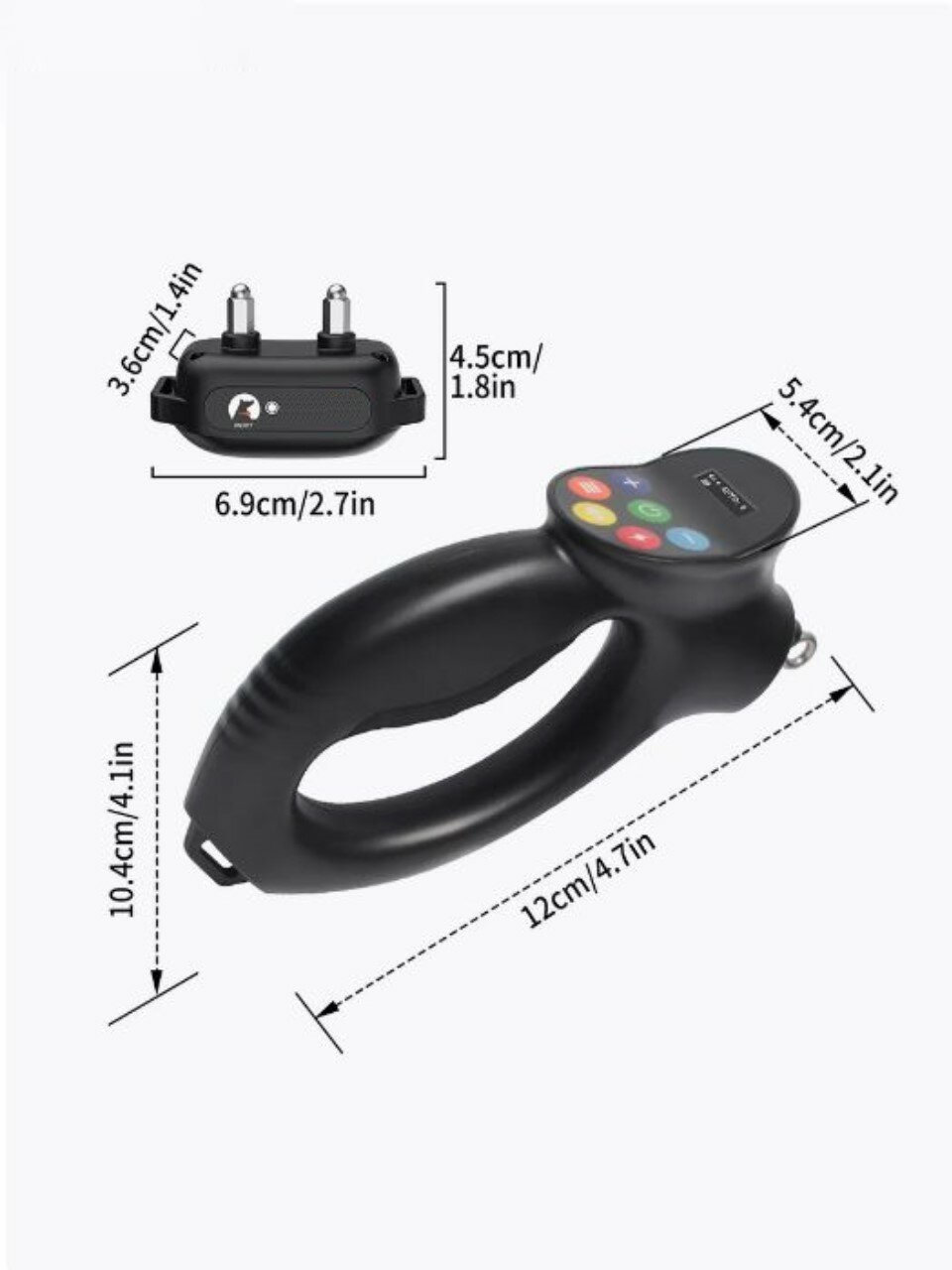 | Комплектация | ● Ресивер (приемник сигнала) ● Пульт-передатчик ● Тест-лампа ● Удлиняющие колпачки на электроды x 2 шт ● Регулируемый по длине ошейник из полиуретана (от 14 см до 67 см окружности шеи) ● Зарядное устройство (вход: 100-240 ~ 50/60 Гц, выход: 5 В 1000 мА или 500 мА) ● Зарядный кабель с двумя штекерами (одновременная зарядка пульта и ресивера) ● Подробная инструкция на русском и английском языках ● Коробка |