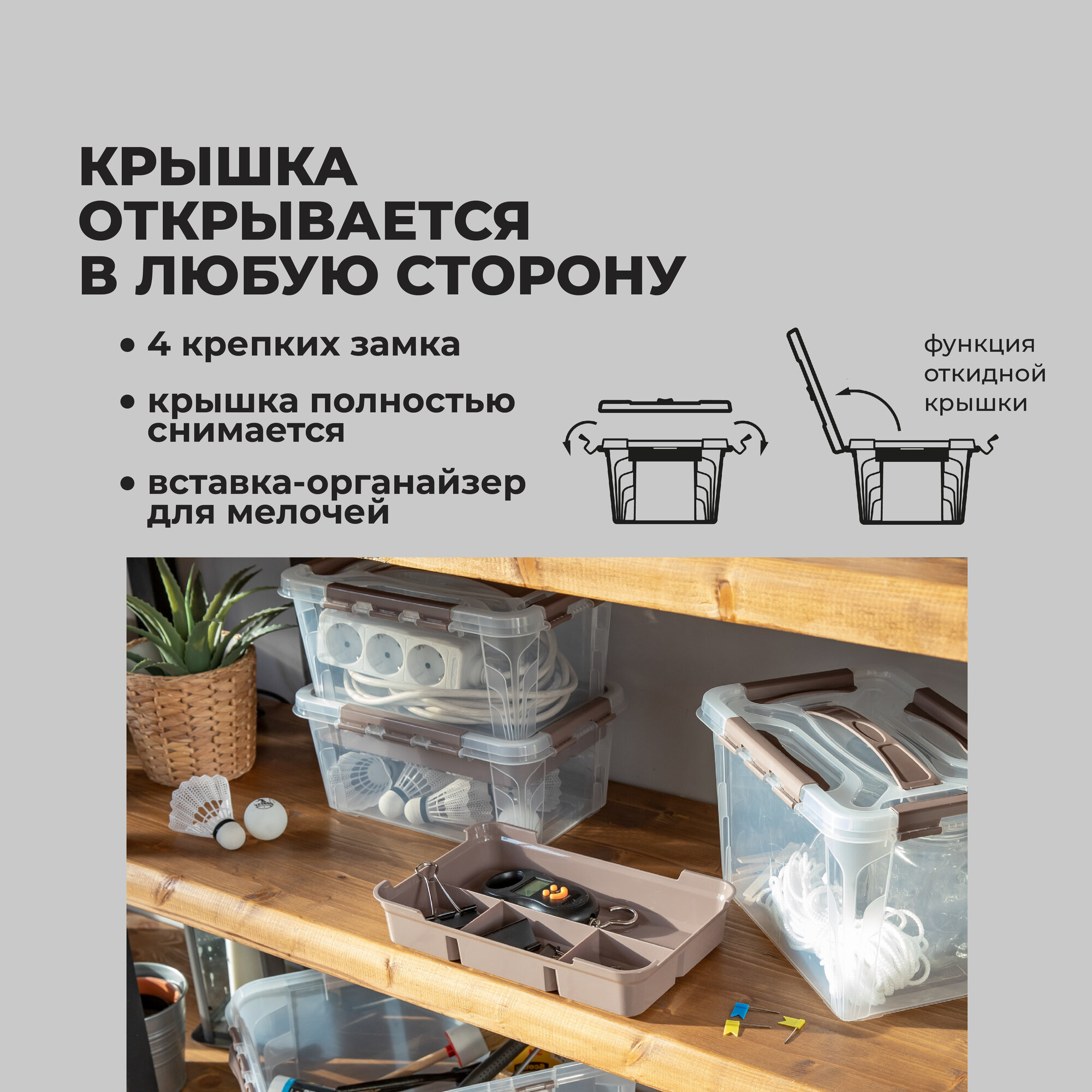 Ящик универсальный С замками И вставкой- органайзером "GRAND BOX", 290х190х124ММ, 4,2Л (Коричневый)