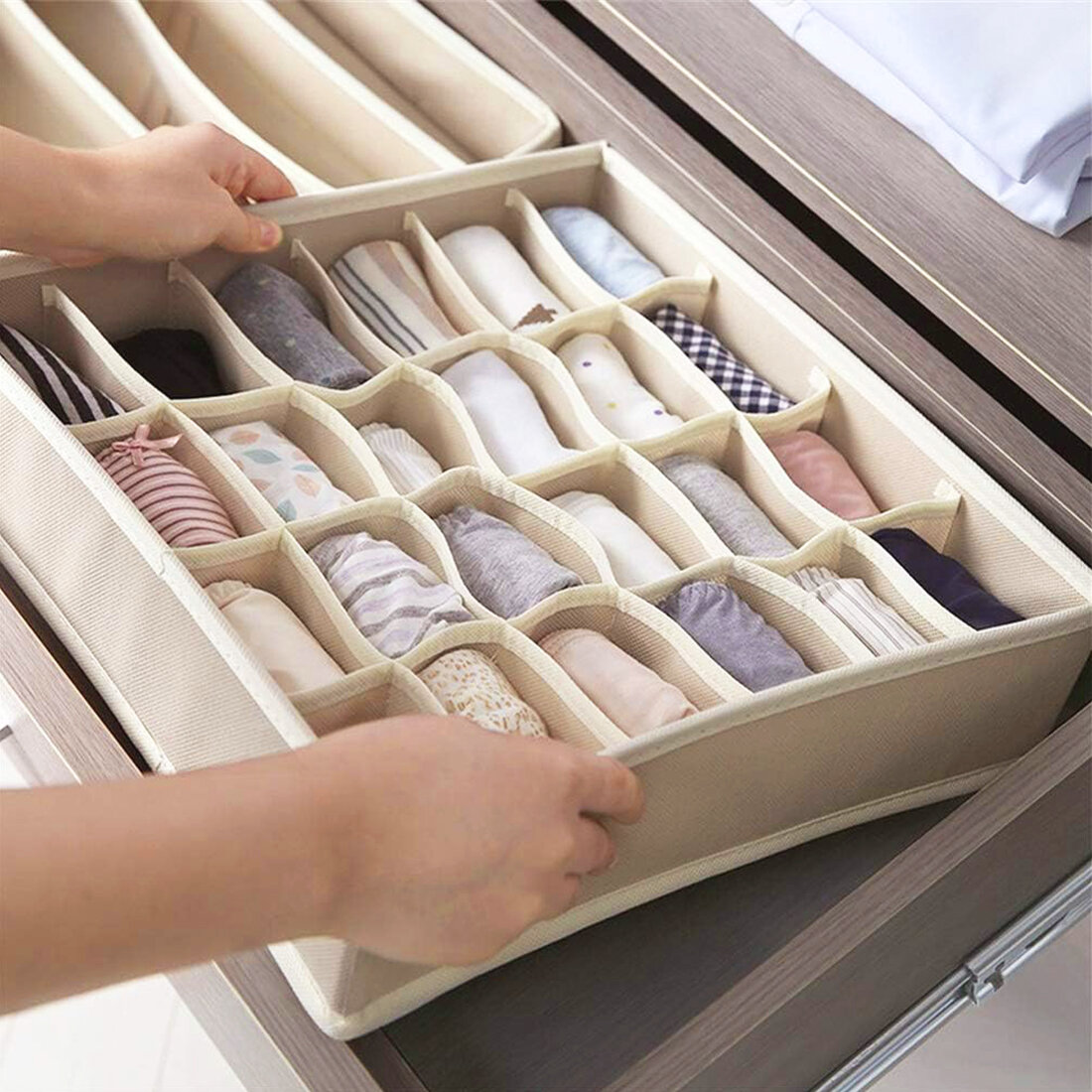 Органайзер Арникс для хранения вещей и одежды, складной, с разделителями/ Кофр для бюстгальтеров, нижнего белья и носков/ Набор 6 шт/ Бежевый