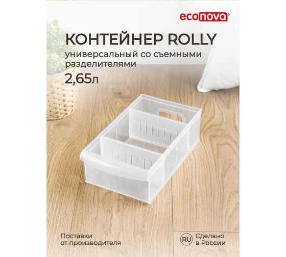 Контейнер универсальный Econova Rolly, 150 x 266 x 87 мм, 2,65 л, прозрачный
