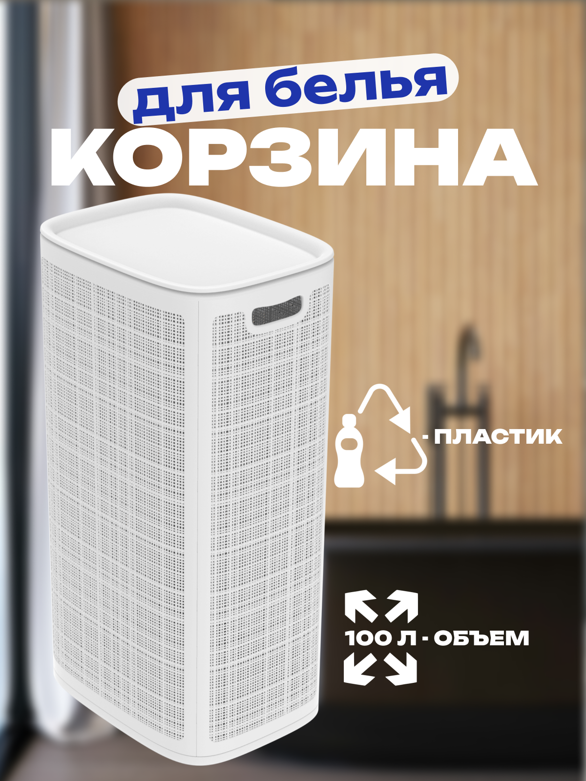 Корзина для белья «Лён», 100л, белый, Альт-Пласт, сборная, полипропилен