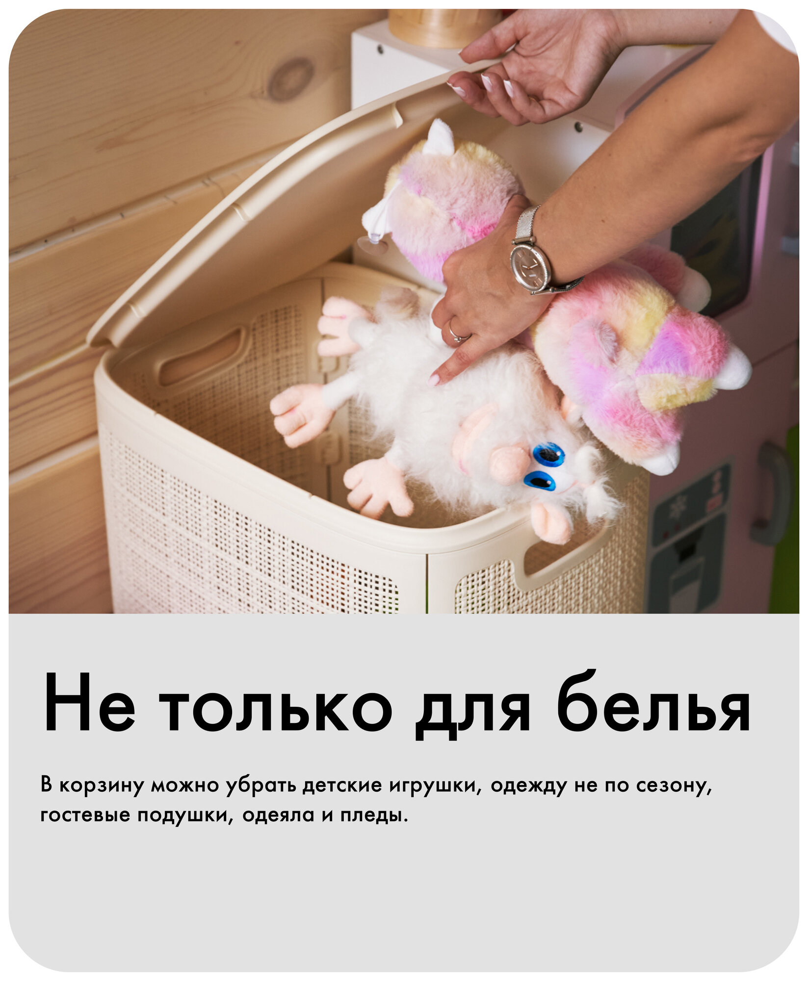 | Особенности | плетеная / ручки для переноски / с крышкой / складной / узкая |