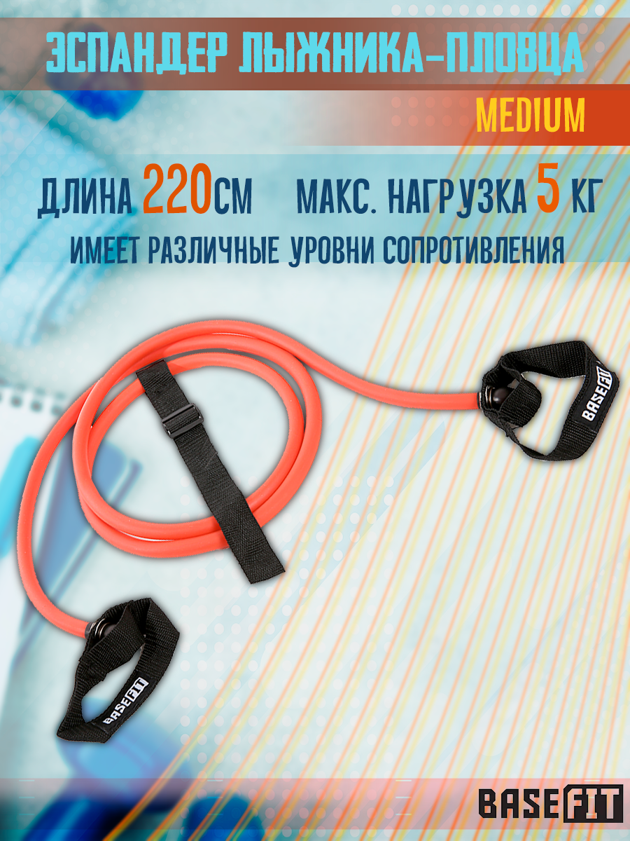 Купить BaseFit Эспандер лыжника-пловца ES-901 5 кг, medium, 8x14x2200 мм, красный УТ-00019766
