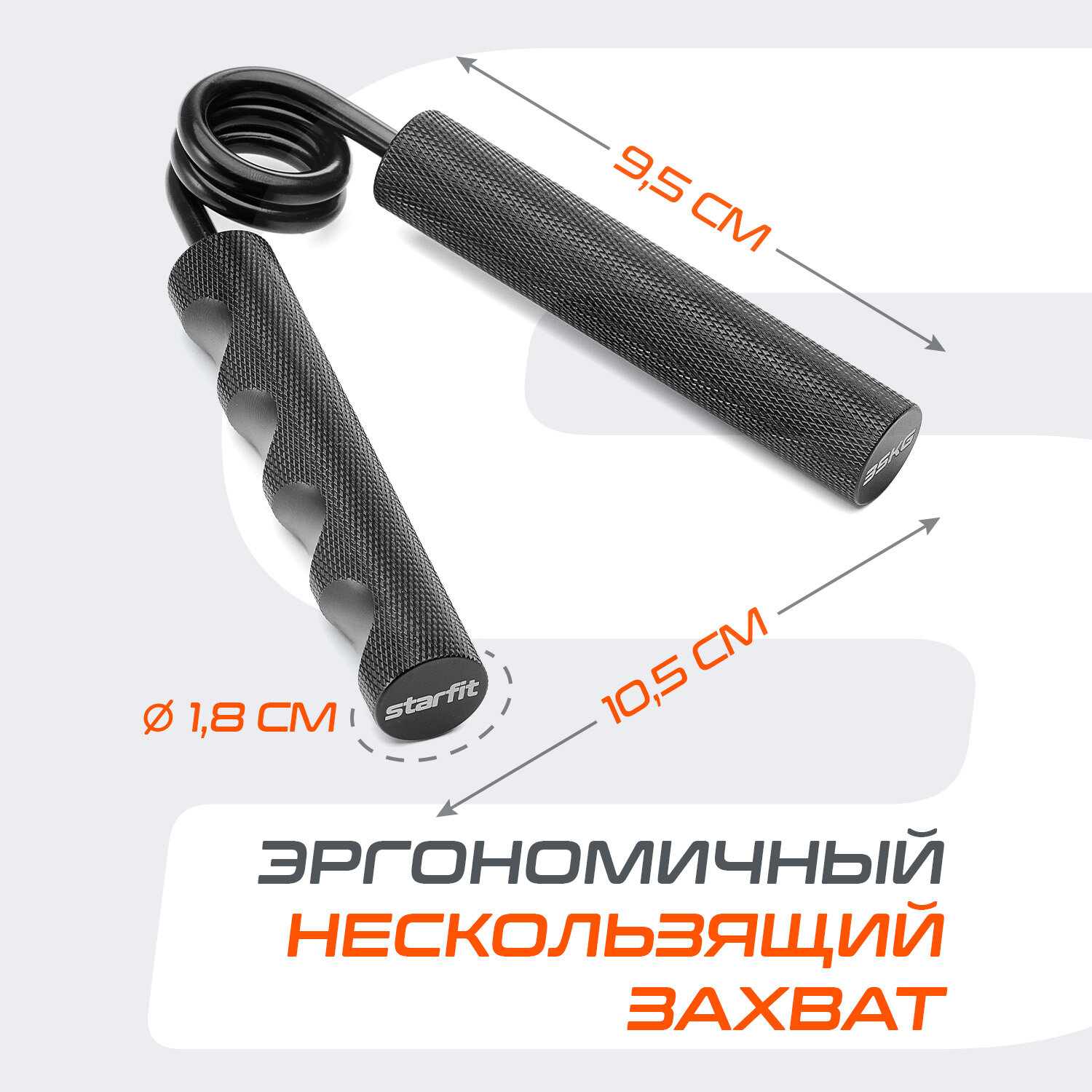 Эспандер кистевой STARFIT ES-405 пружинный, металлический, 45 кг, черный/оранжевый.