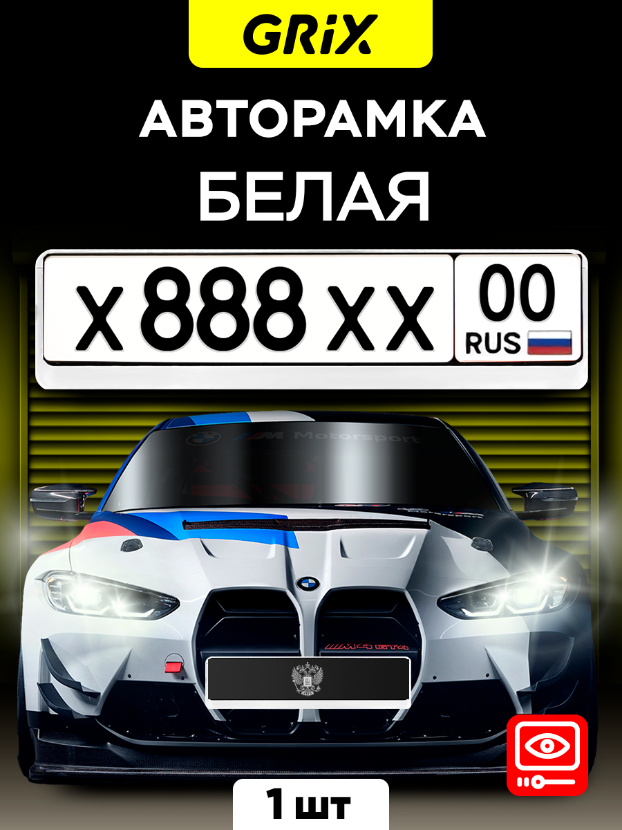 Купить Grix Рамка автомобильная для госномера без надписи белая 1 шт.