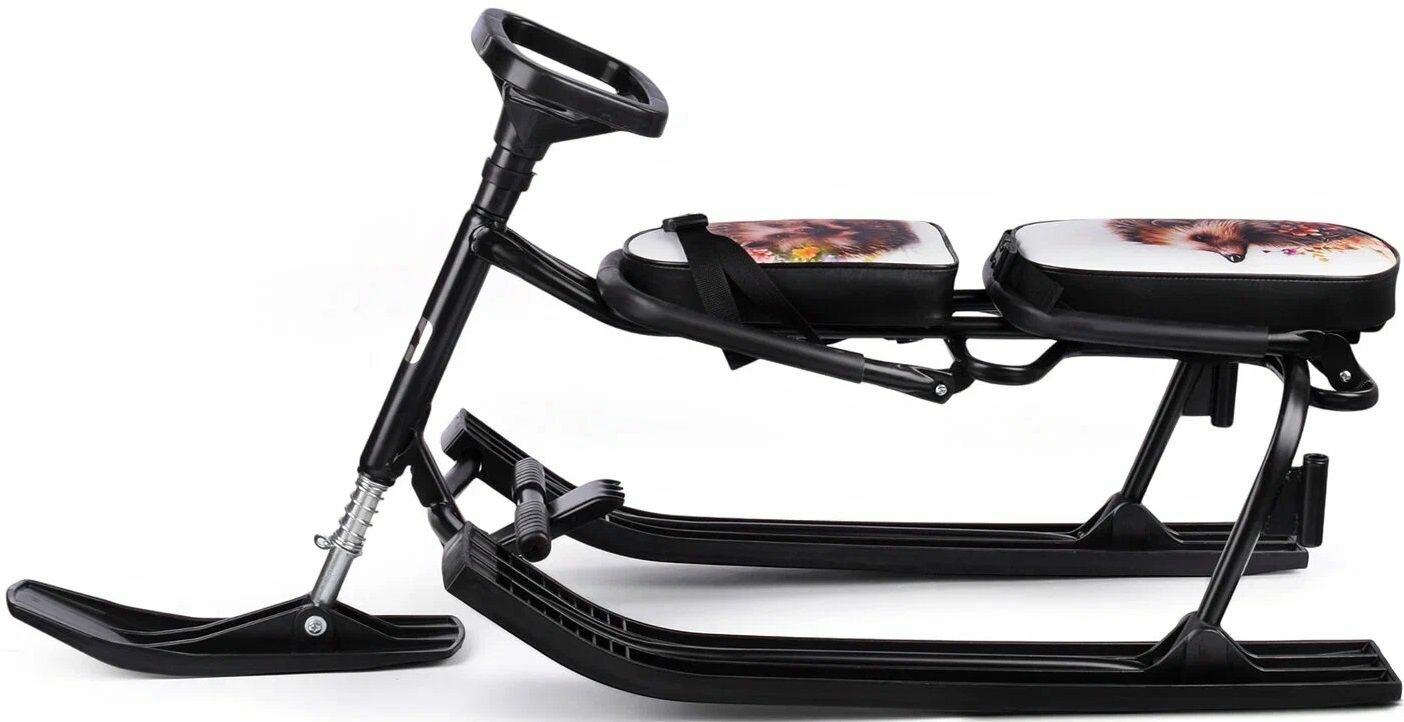 Снегокат 505 TWINS BABY PUSH разборный для двоих, с двумя складными спинками и П-образным (Ёжики)