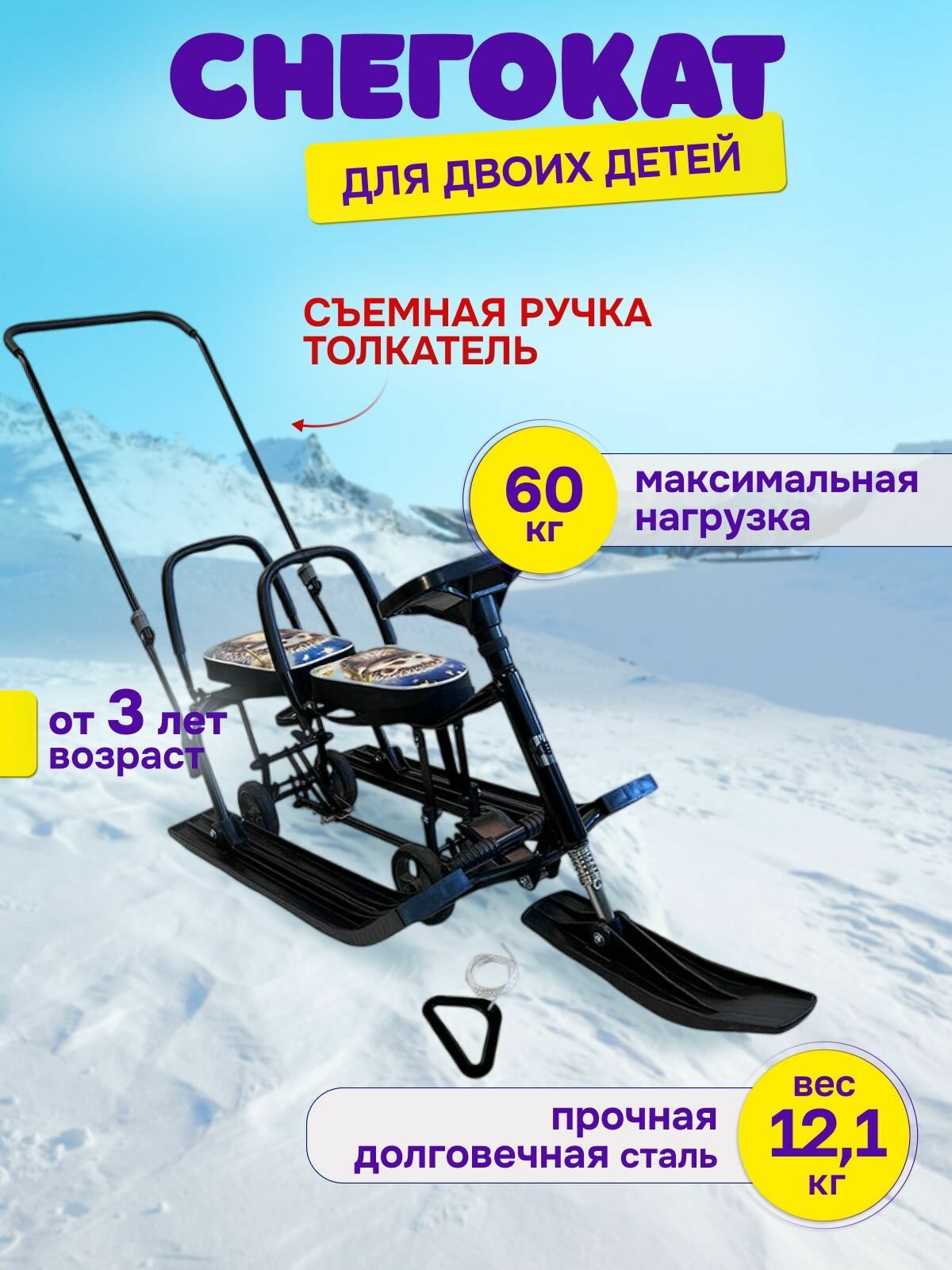 Снегокат Барс 505 Twins Baby Push Скорость 59, 2 места, от 3 лет