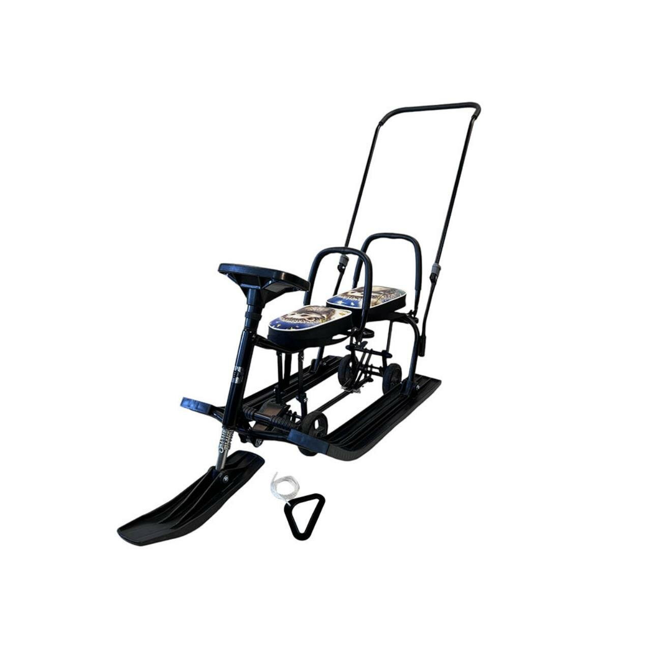 Снегокат 505 TWINS BABY PUSH разборный для двоих, с двумя складными спинками и П-образным (Совы)