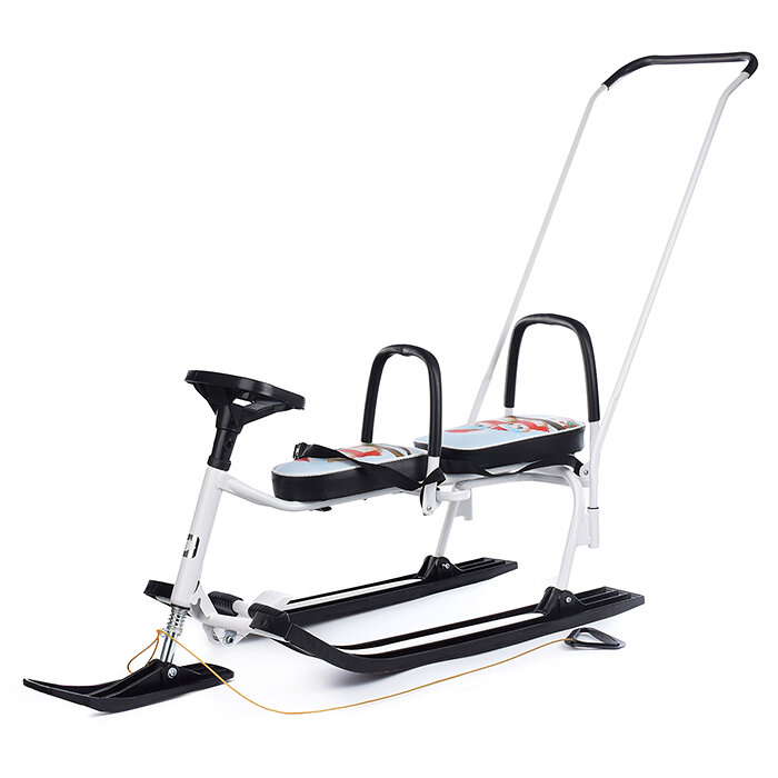 Снегокат Ника-SNOWPATROL (SNOWPATROL 2) рама белая со спинкой, трос авт. нам, велоруль