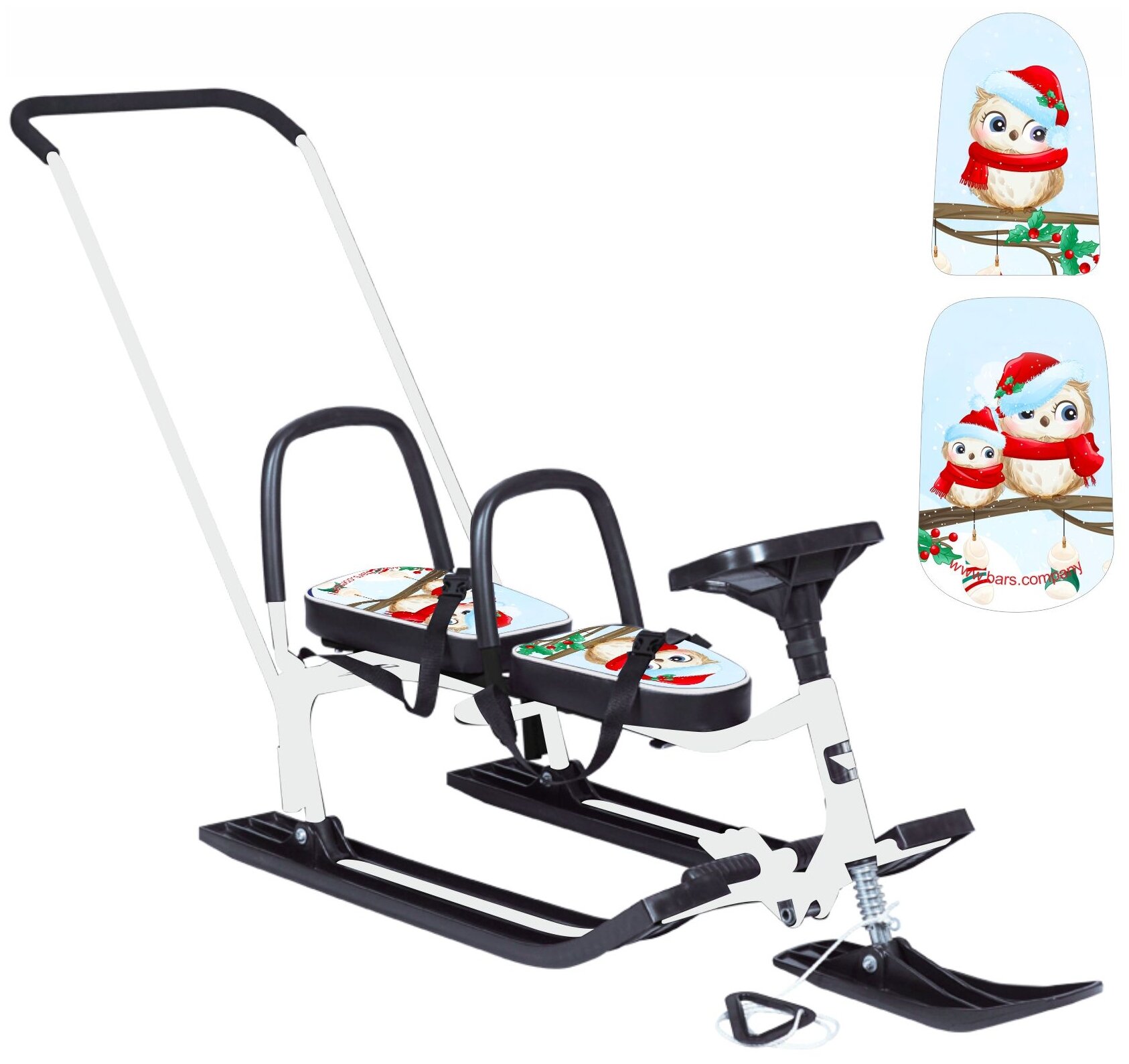 Купить Снегокат 505 TWINS BABY PUSH разборный для двоих, с двумя складными спинками и П-образным (Совы)