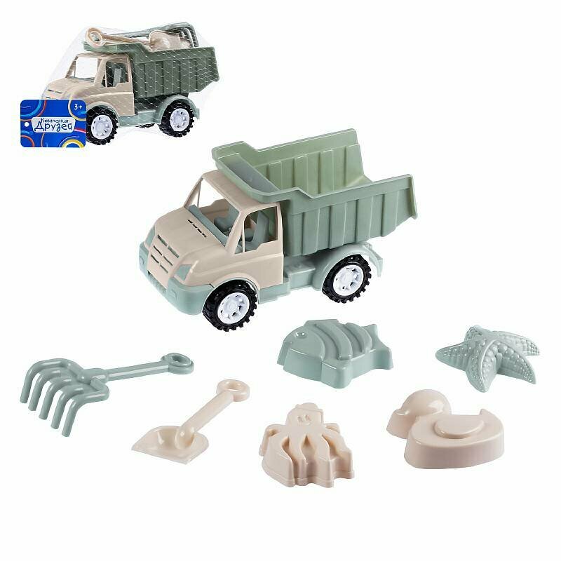 Компания Друзей Грузовик с песочн. набором (в комп. лопатка и грабли 16 см, 4 формочки) 24 х 1