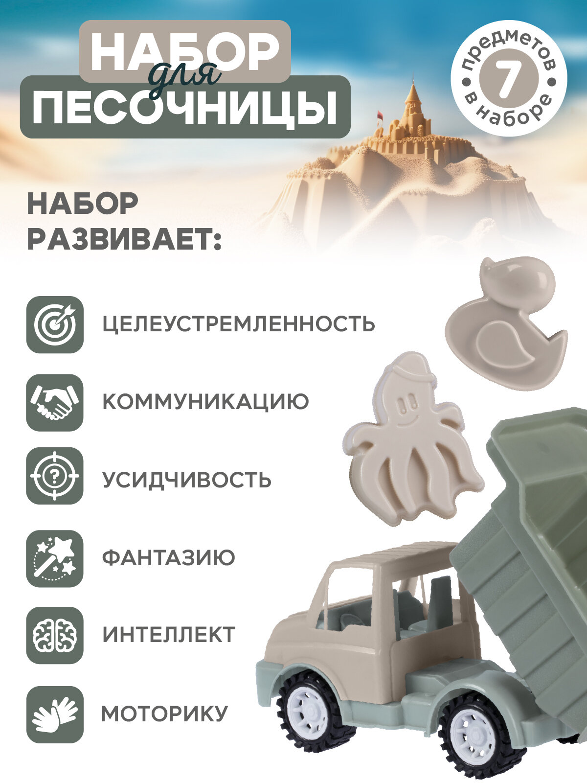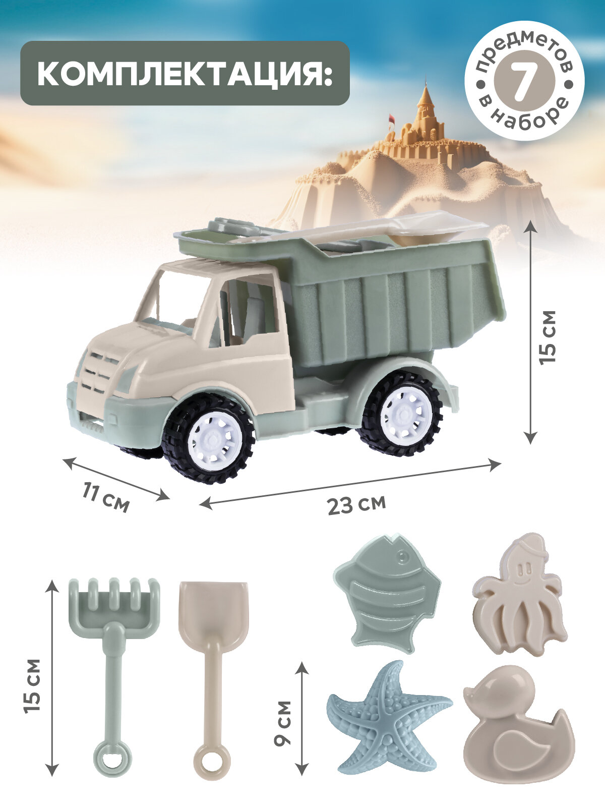 Набор для игры в песочнице с грузовиком, грабельки/лопатка, формочки для песка, JB5300534