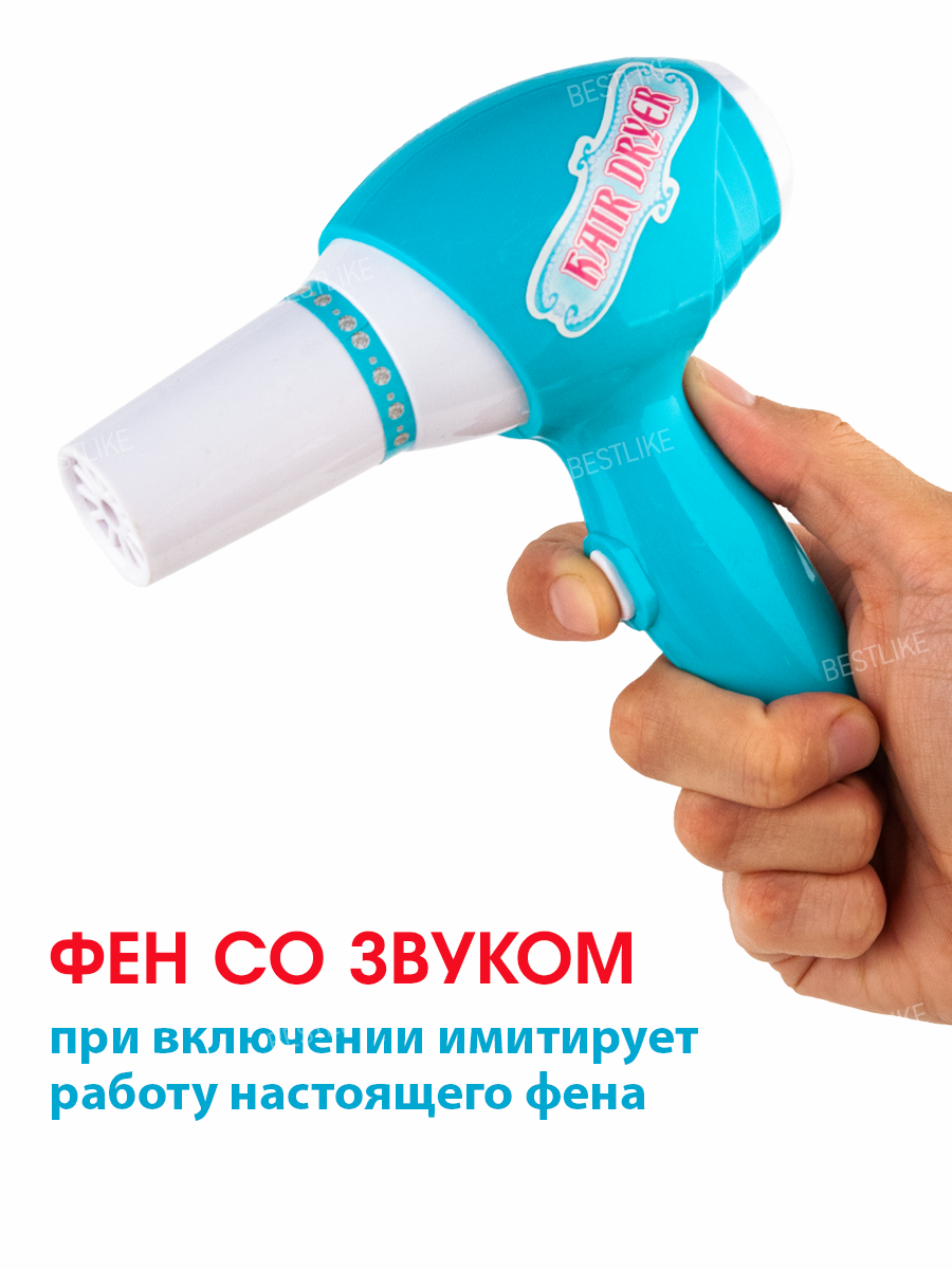 Детский салон красоты, фен со звуком, свет, звук интересное: