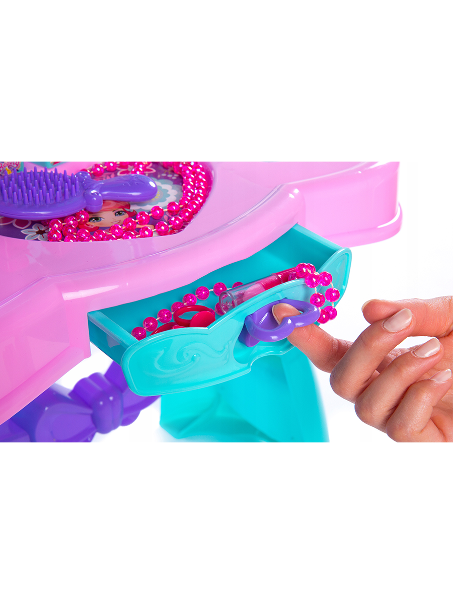 | Комплектация | расческа 1 шт / фен (без звука) 1 шт / столик с зеркалом / помада имитация 2 шт / лаки имитация 3 шт / бусы 1 шт / кольца 3 шт / флакон 1 шт / крышечка звезда 1 шт. |
