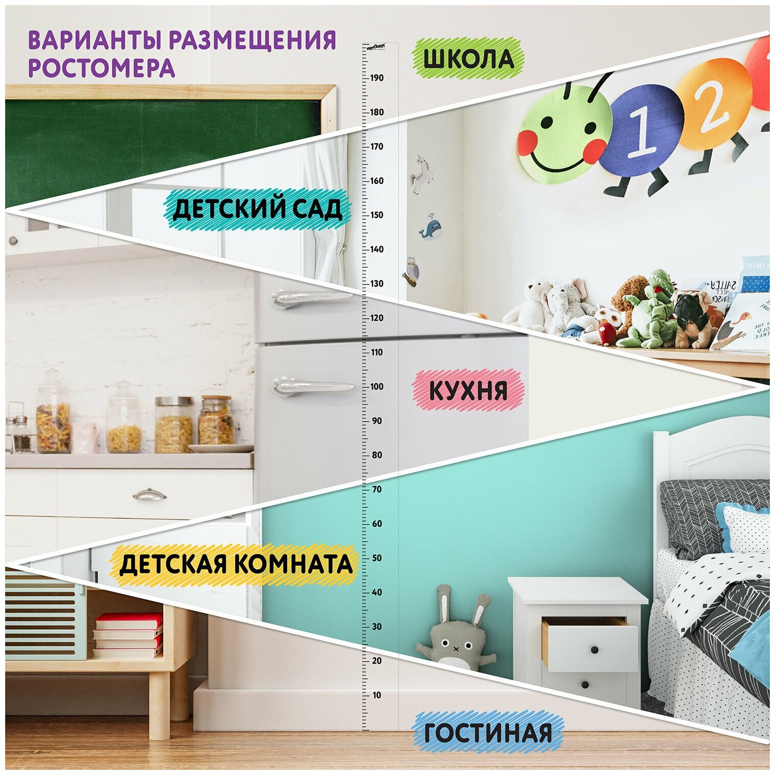 Ростомер Юнландия универсальный, шкала 200 см, размер 7х201 см, прозрачная основа (664692)