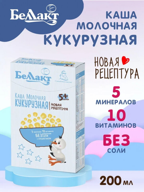 Каша зерно-молочная кукурузная беллакт с пребиотиком 200г интересное: