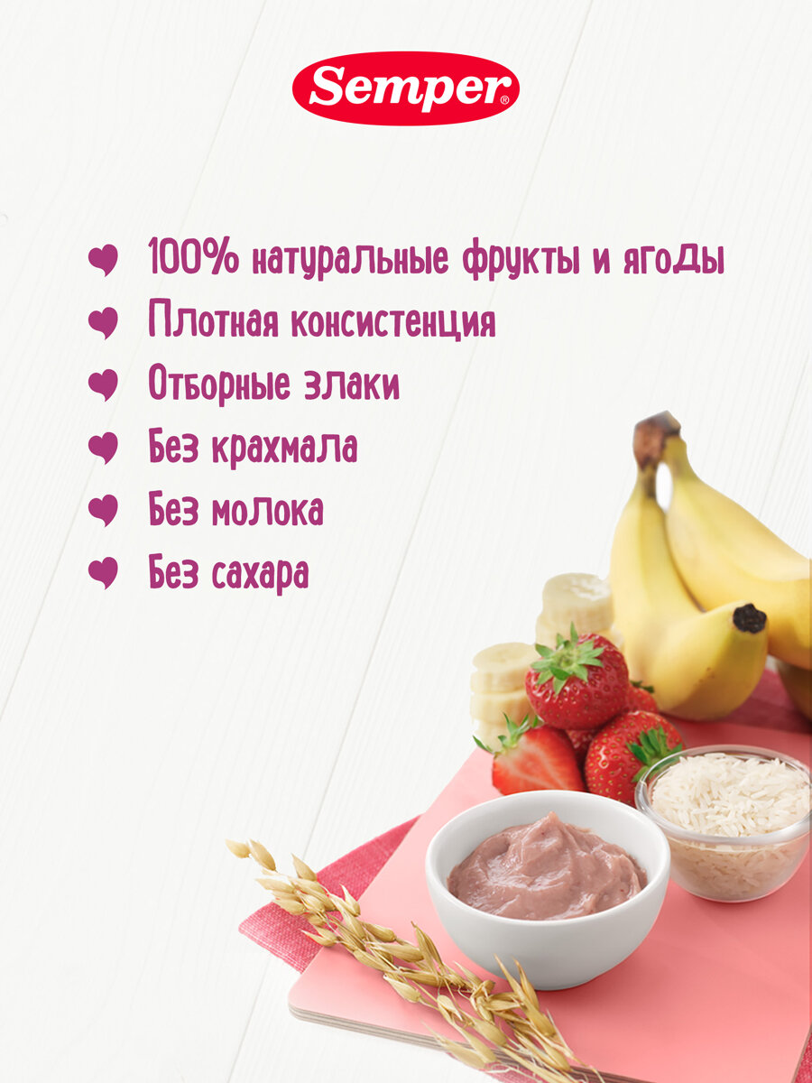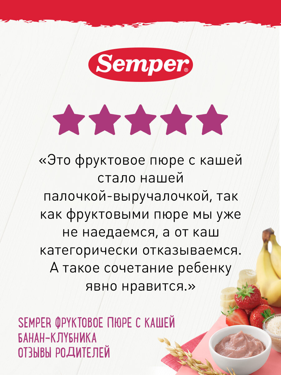 Каша с фруктовым пюре Semper Банан-клубника без добавления сахара, с 6 месяцев, 120 г интересное: