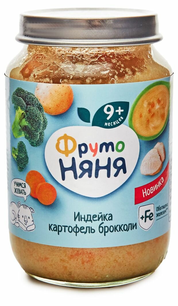 Пюре ФрутоНяня индейка-картофель-брокколи 190г с 9месяцев, 6 шт