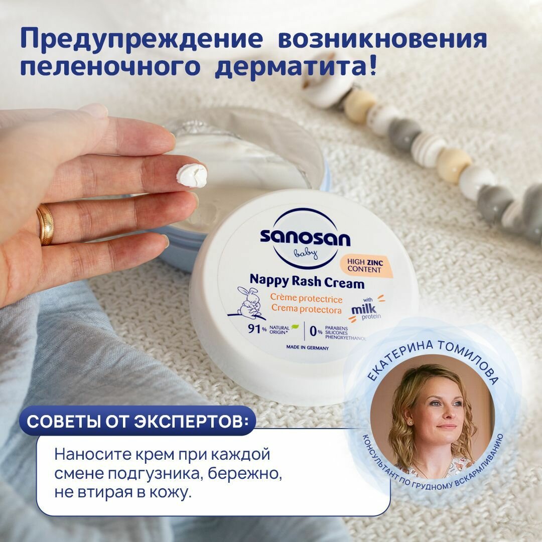 Крем от опрелостей под подгузник детский заживляющий защитный для ухода за кожей новорожденных младенцев малышей с пантенолом 150 мл Sanosan интересное: