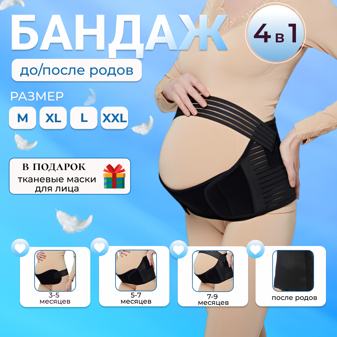Бандаж для беременных 4 в 1 универсальный, дородовой, послеродовой, после кесарева, ЧЕРНЫЙ, р. М (80-110 см) АЛЬМЕД