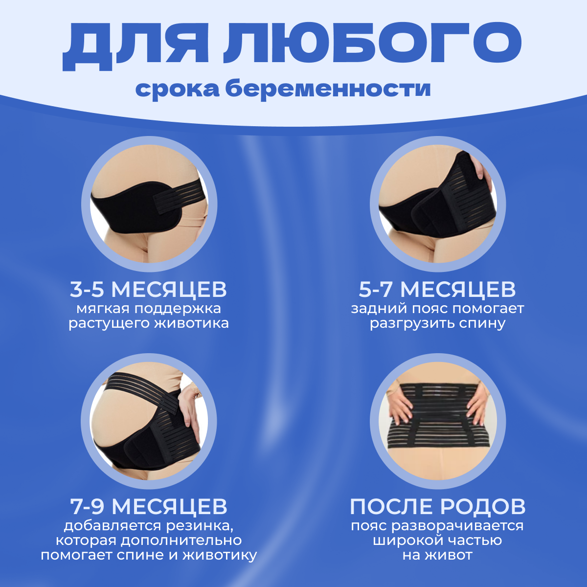 Бандаж для беременных 4 в 1 универсальный, дородовой, послеродовой, после кесарева, СИНИЙ, р. L (90-120 см) АЛЬМЕД