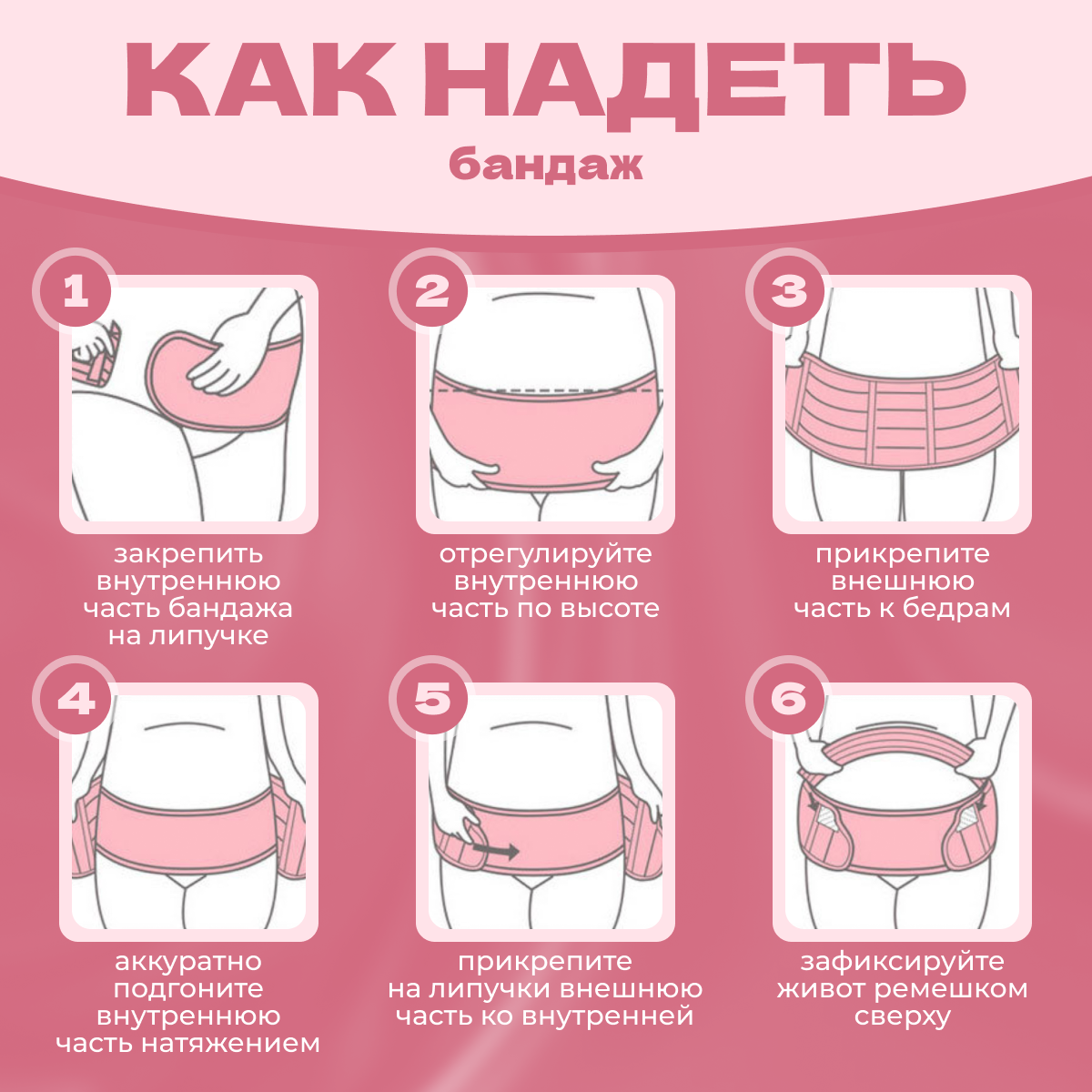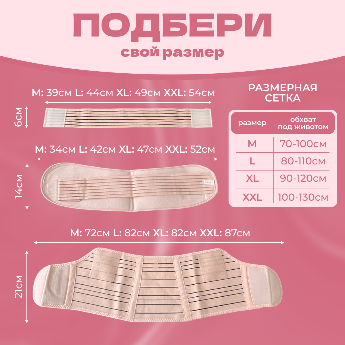 Бандаж для беременных 4 в 1 универсальный, дородовой, послеродовой, после кесарева, РОЗОВЫЙ, р. M (80-110 см), АЛЬМЕД