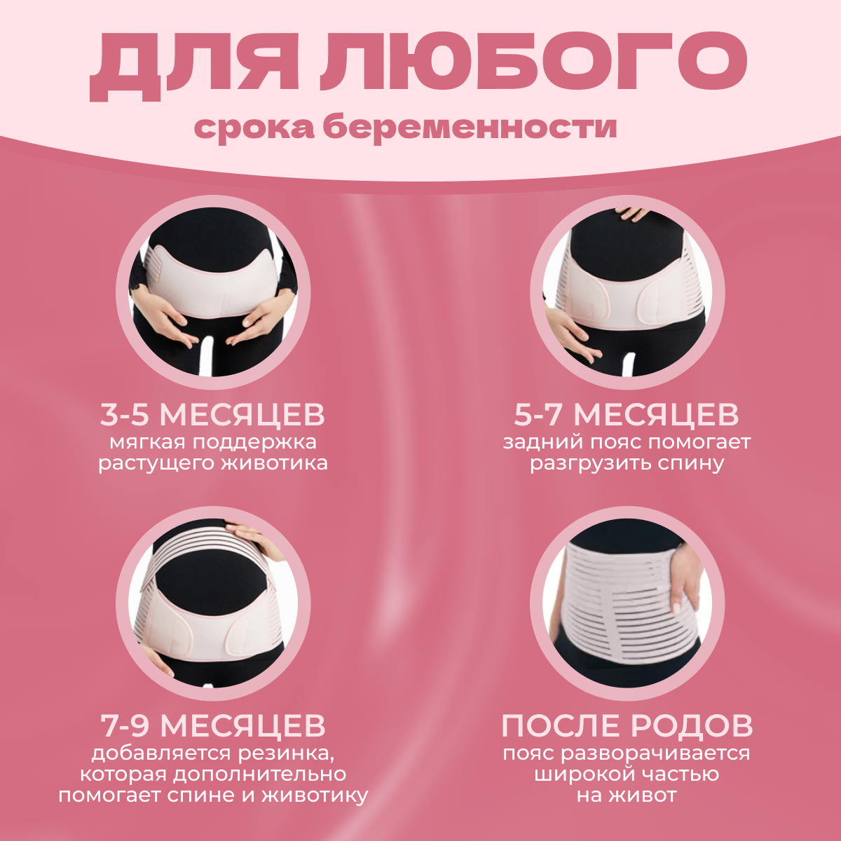 Бандаж для беременных 4 в 1 универсальный, дородовой, послеродовой, после кесарева, РОЗОВЫЙ, р. M (80-110 см), АЛЬМЕД