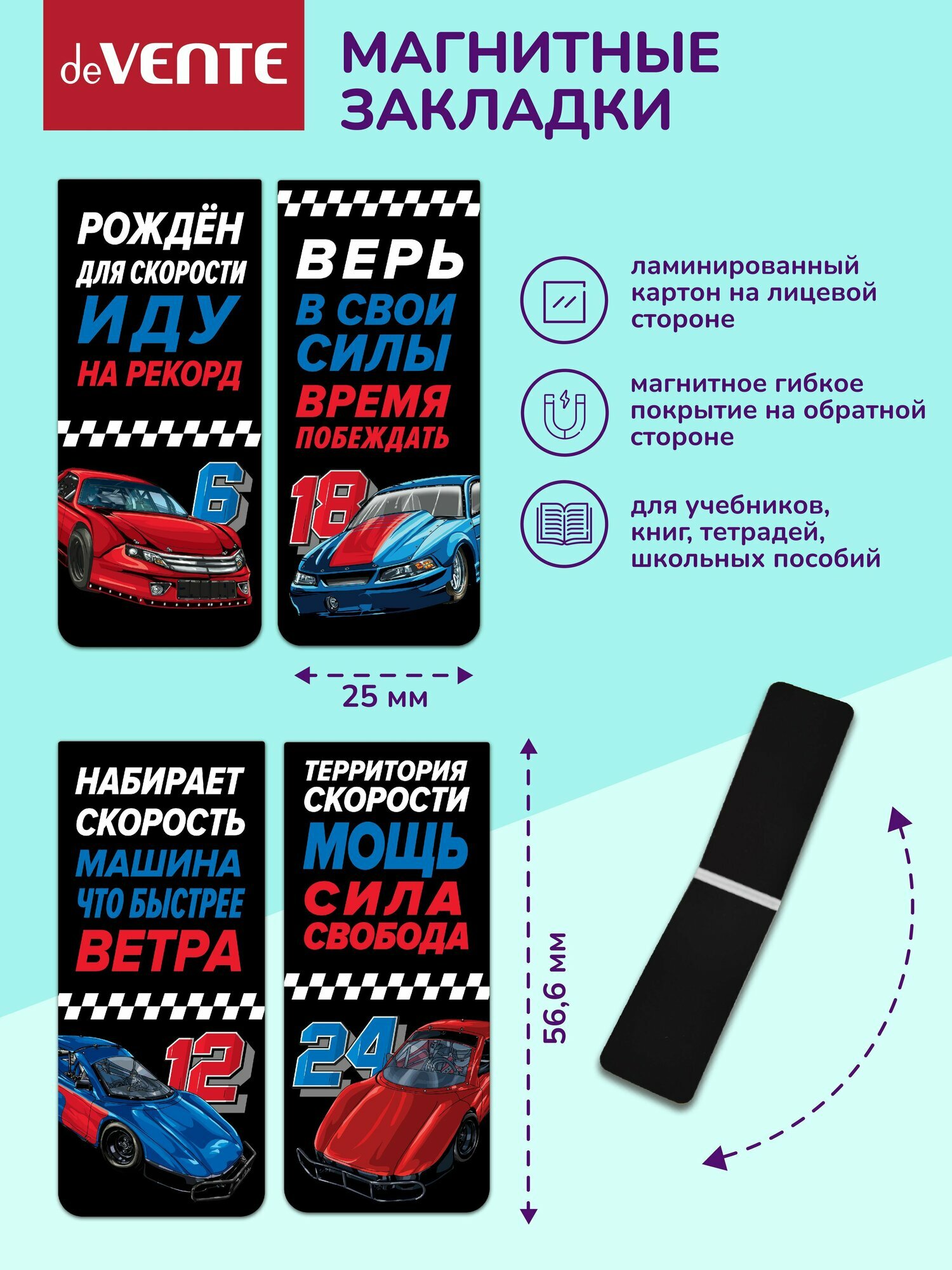 Купить Закладки для книг deVENTE магнитные, "Racing" 4 шт, блистер (8065312)