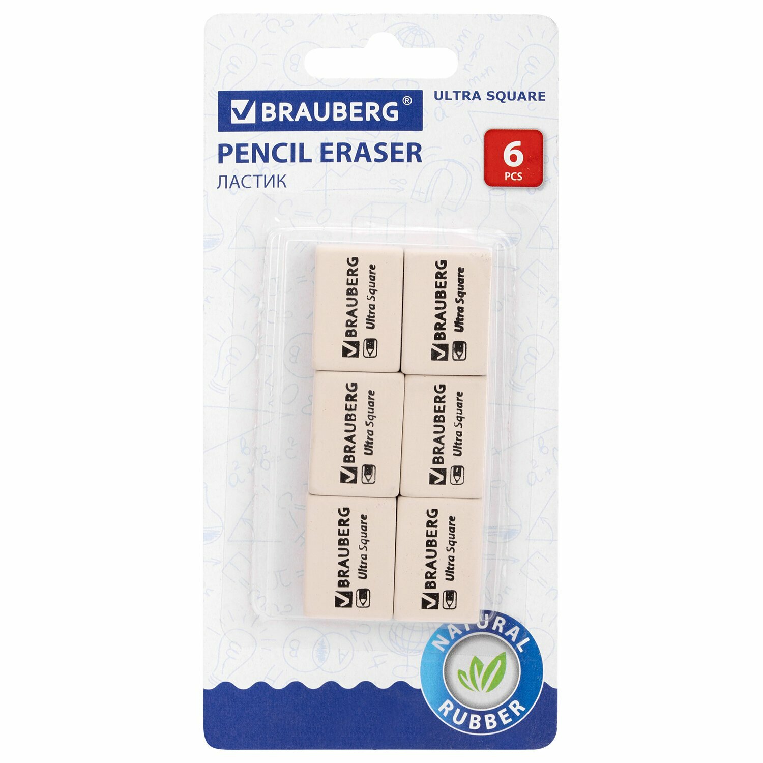 Купить Ластики BRAUBERG "Ultra Square" набор 6 шт., размер ластика 29х18х8 мм, белые, натуральный каучук, 229603