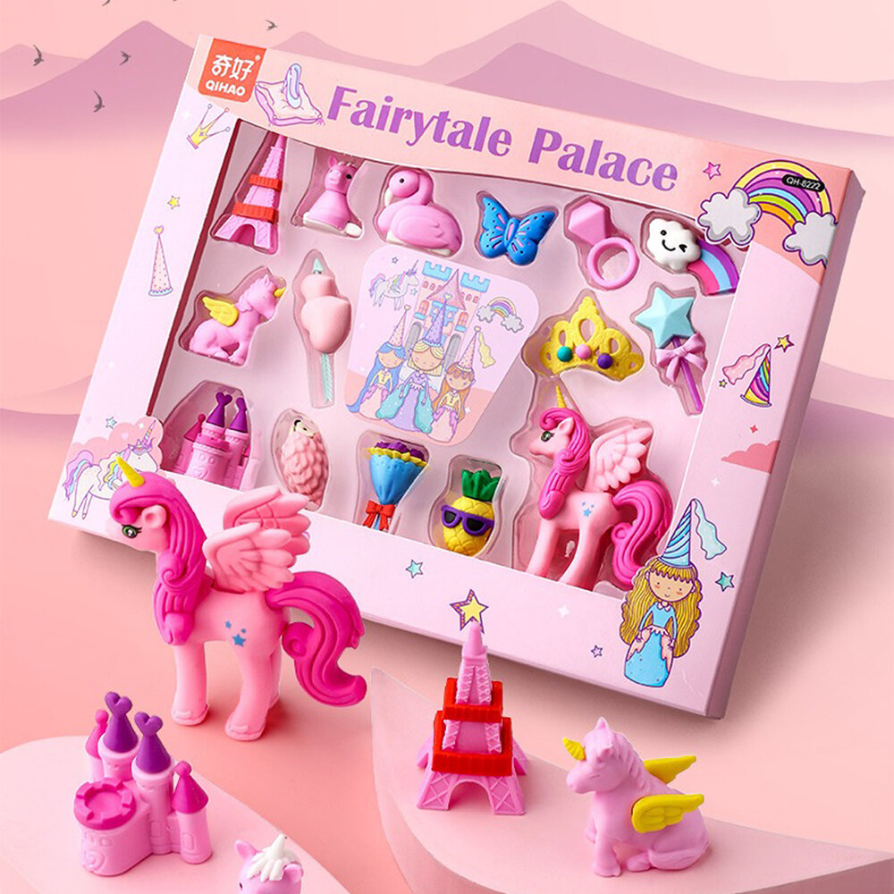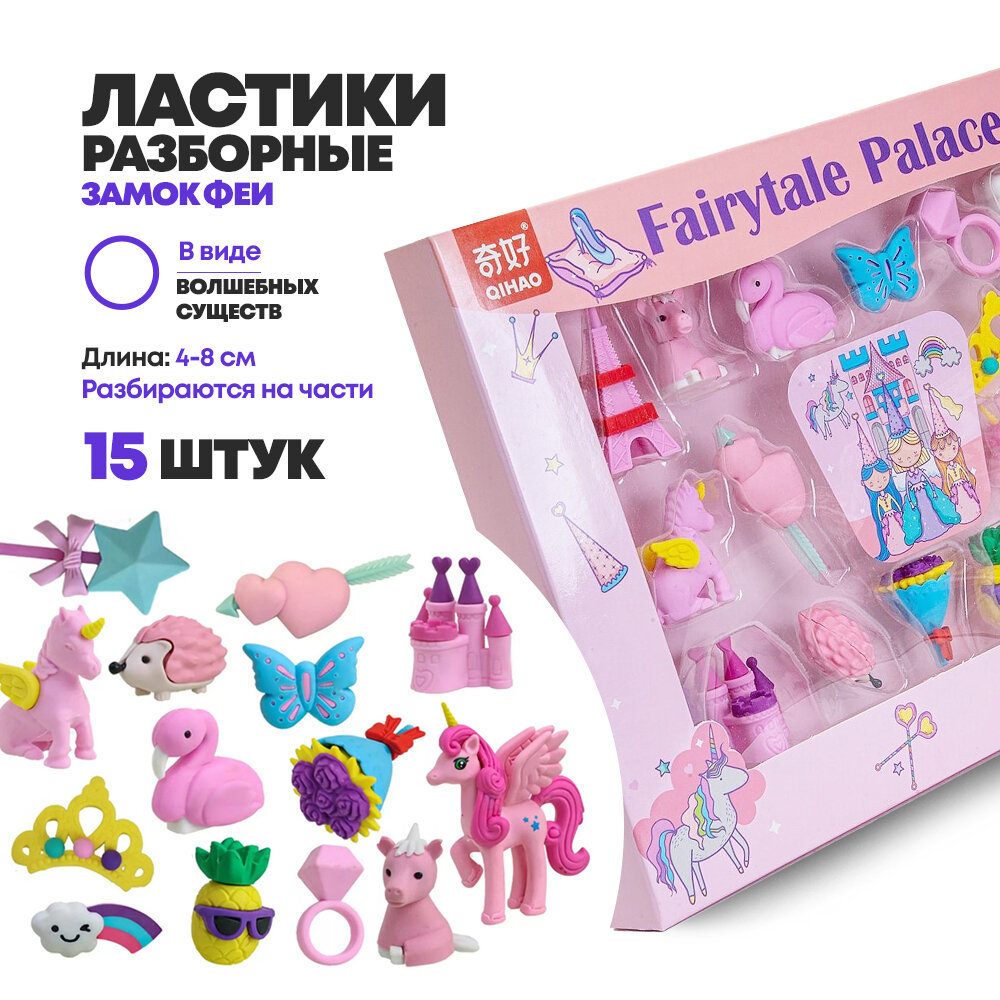 Купить Набор ластиков разборных 15 штук, Qihao "Fairytale Palace" в коробке, фигурки с тематикой фей, школьные стерки для детей