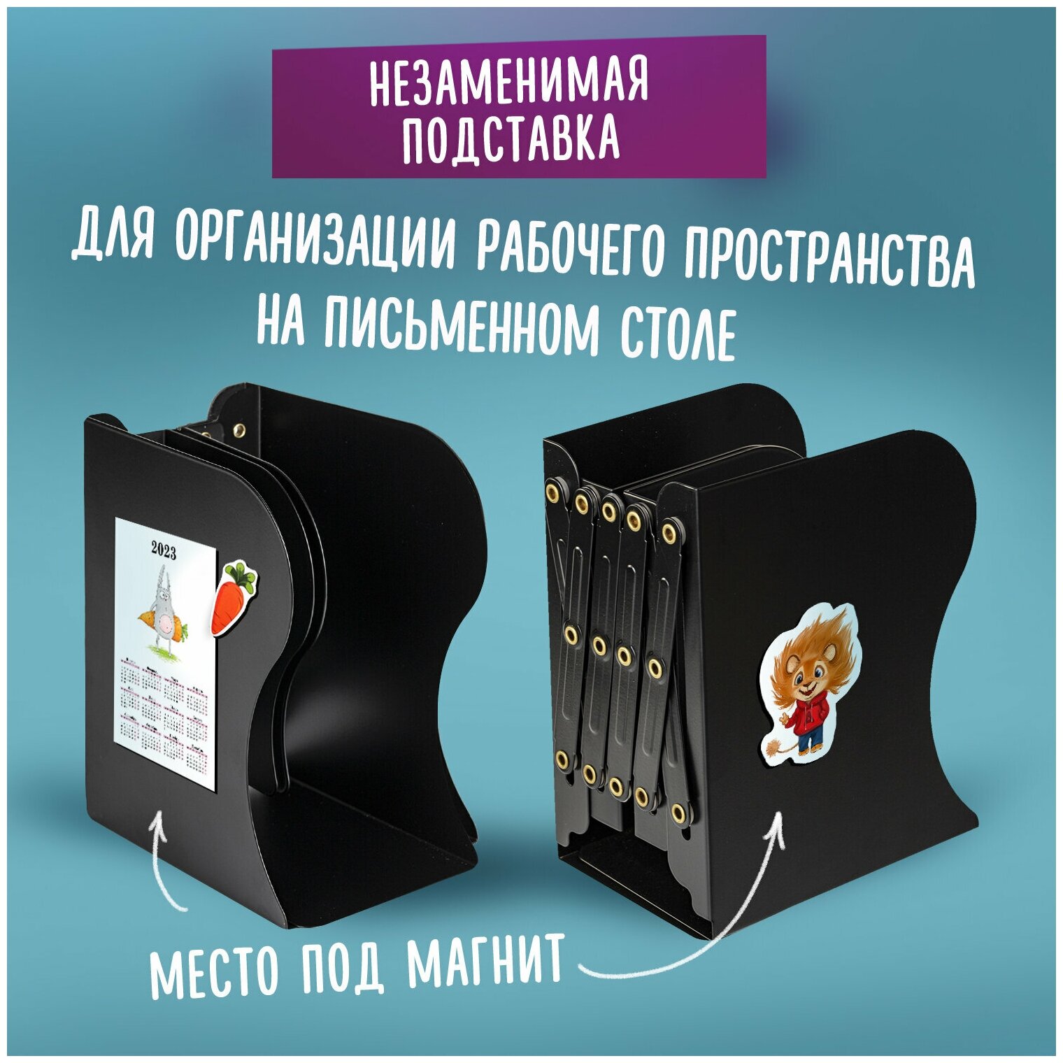 Подставка-держатель для книг и учебников BRAUBERG, раздвижная, металлическая, черная, 237904 интересное: