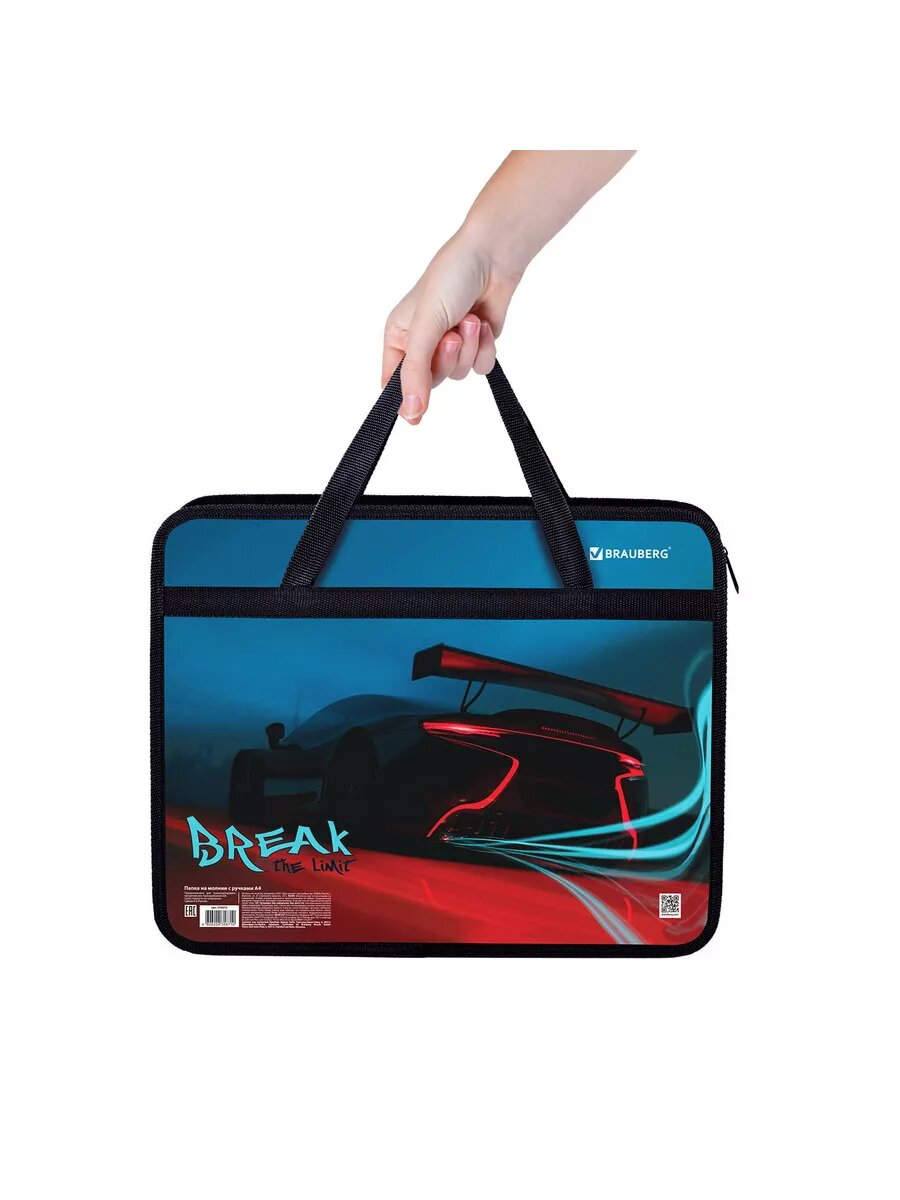 Папка на молнии с ручками Brauberg А4, 1 отделение, пластик, 80 мм, Night driver, 272169