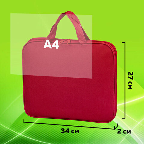 Папка-сумка / портфель для документов / бумаг / тетрадей / школы канцелярская с ручками на молнии Staff Everyday, А4, полиэстер, красная, 270730