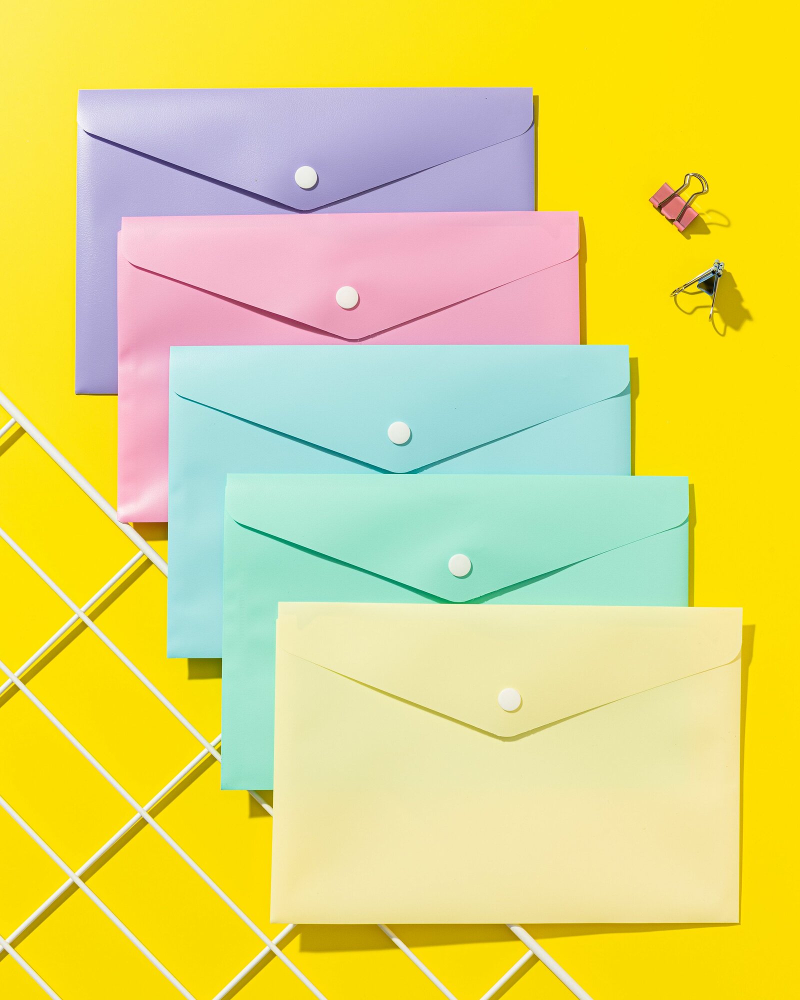 Папка-конверт на кнопке Attache Акварель А4 180 мкм 5шт/уп (цвета в асс)
