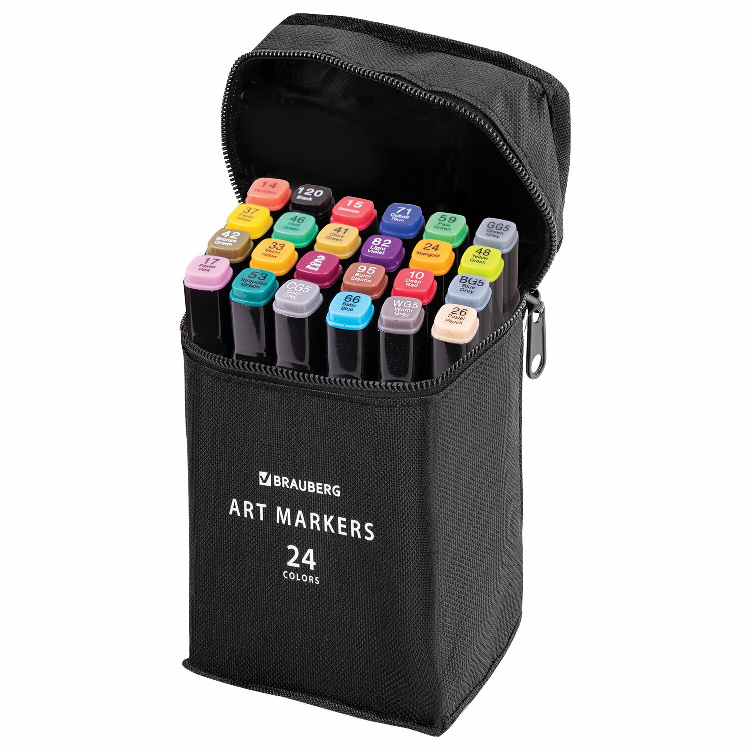 Купить Маркеры для скетчинга двусторонние, набор 24 шт., базовые цвета, в чехле, BRAUBERG, 152295