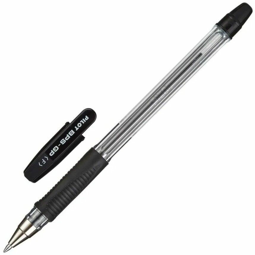 Ручка шариковая масляная с грипом PILOT "BPS-GP", черная, корпус прозрачный, узел 0,7 мм, линия письма 0,21 мм, BPS-GP-F, BРS-GP-F
