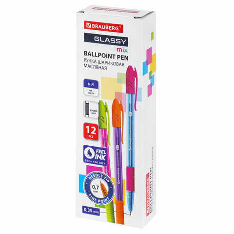 Ниже Вы можете прочитать отзывы на Ручка шариковая масляная с грипом BRAUBERG GLASSY MIX, синяя, корпус ассорти, линия письма 0,35 мм, 144106, 12 штук, ознакомится с подробными характеристиками, посмотреть интересные обзоры и фотографии на Ручка шариковая масляная с грипом BRAUBERG GLASSY MIX, синяя, корпус ассорти, линия письма 0,35 мм, 144106, 12 штук.