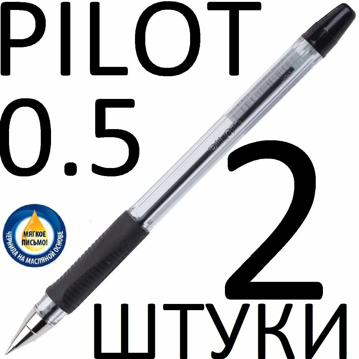 Ручка шариковая Pilot BPS черная, прозрачный круглый корпус, грип, 0,5 мм, 2 шт