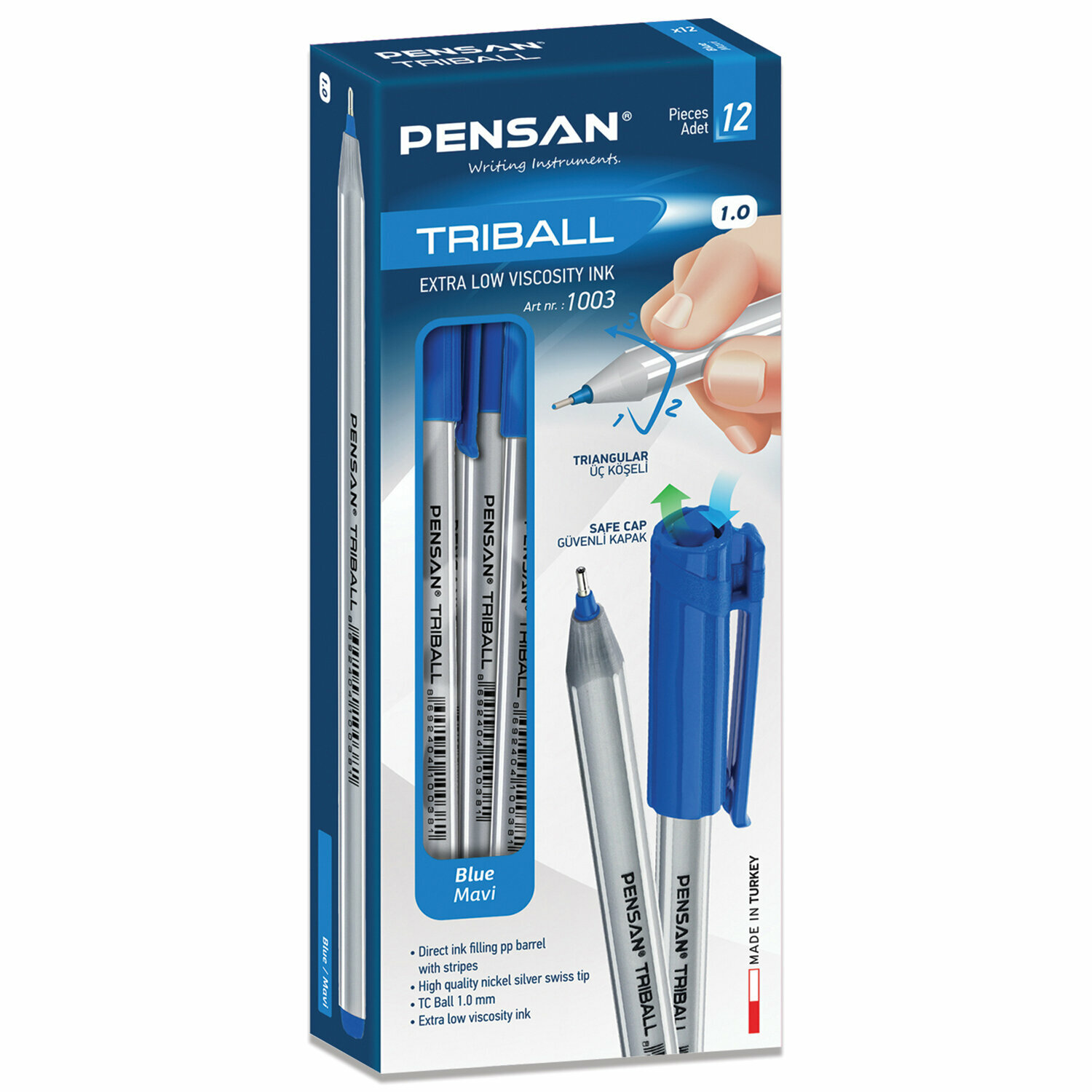 Ручка шариковая неавтоматическая PENSAN TRIBALL -синяя-1,0мм EN71 - 12 шт.