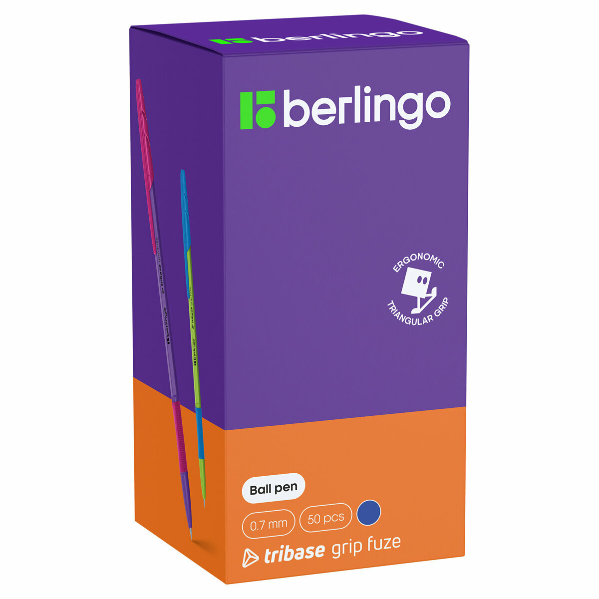 Набор 50 шт. - Ручка шариковая Berlingo "Tribase grip fuze" синяя, 0,7 мм, корпус ассорти, с грипом CBp_70968