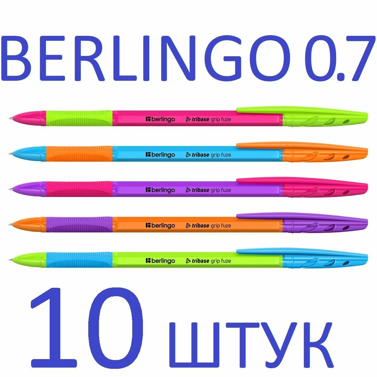Набор 10 шт. - Ручка шариковая Berlingo "Tribase grip fuze" синяя, 0,7 мм, корпус ассорти, с грипом CBp_70968