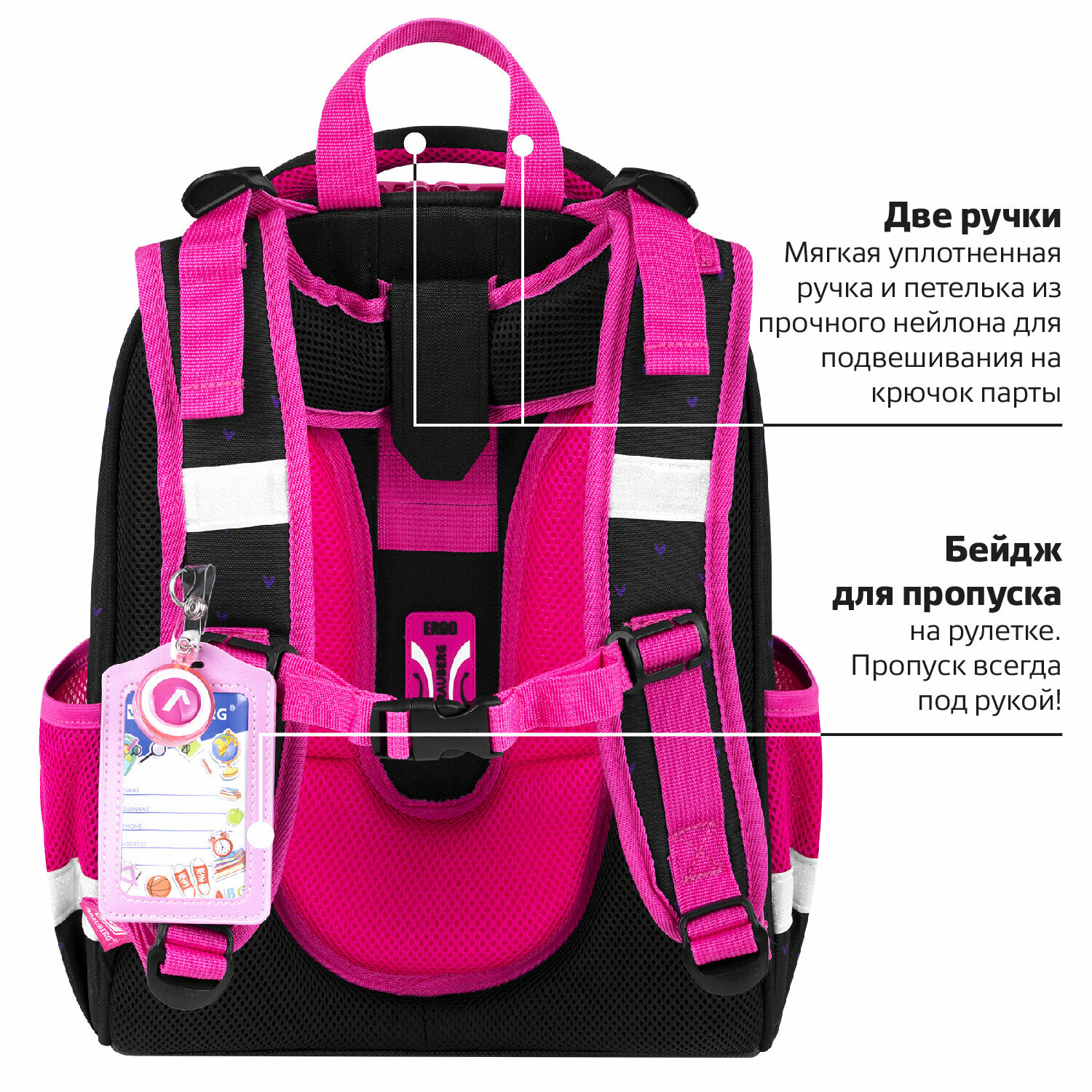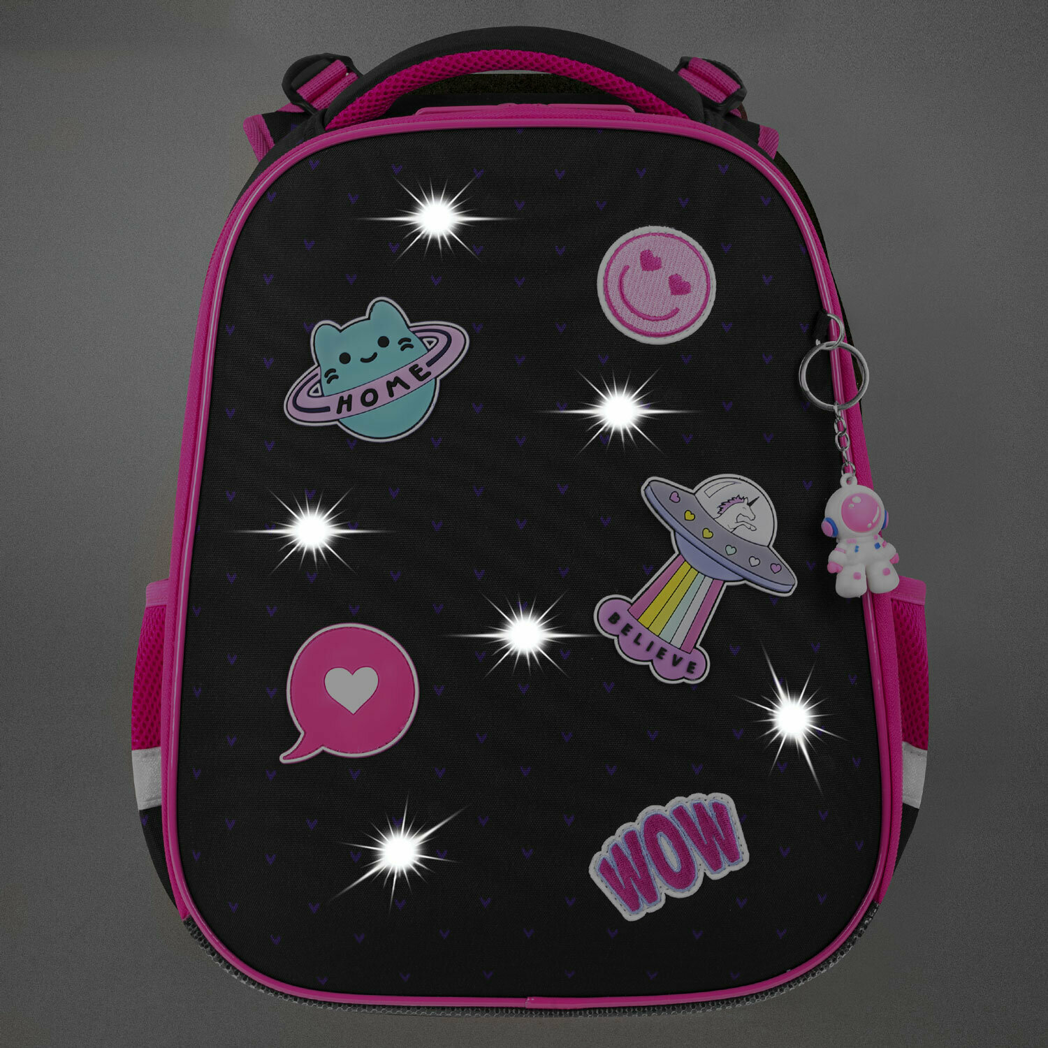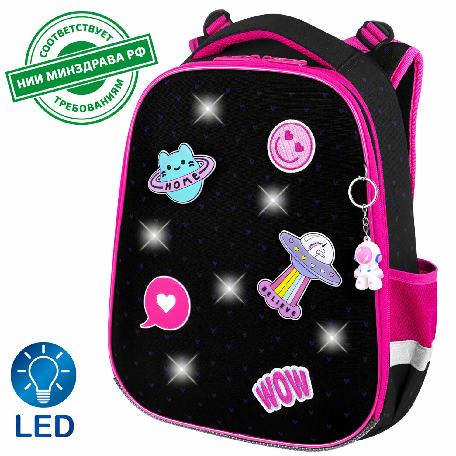 Рюкзак школьный для девочки, портфель для первоклассницы ортопедический, ранец детский в школу, 2 отделения, брелок, led-лампы, Brauberg Space sweet, 272020