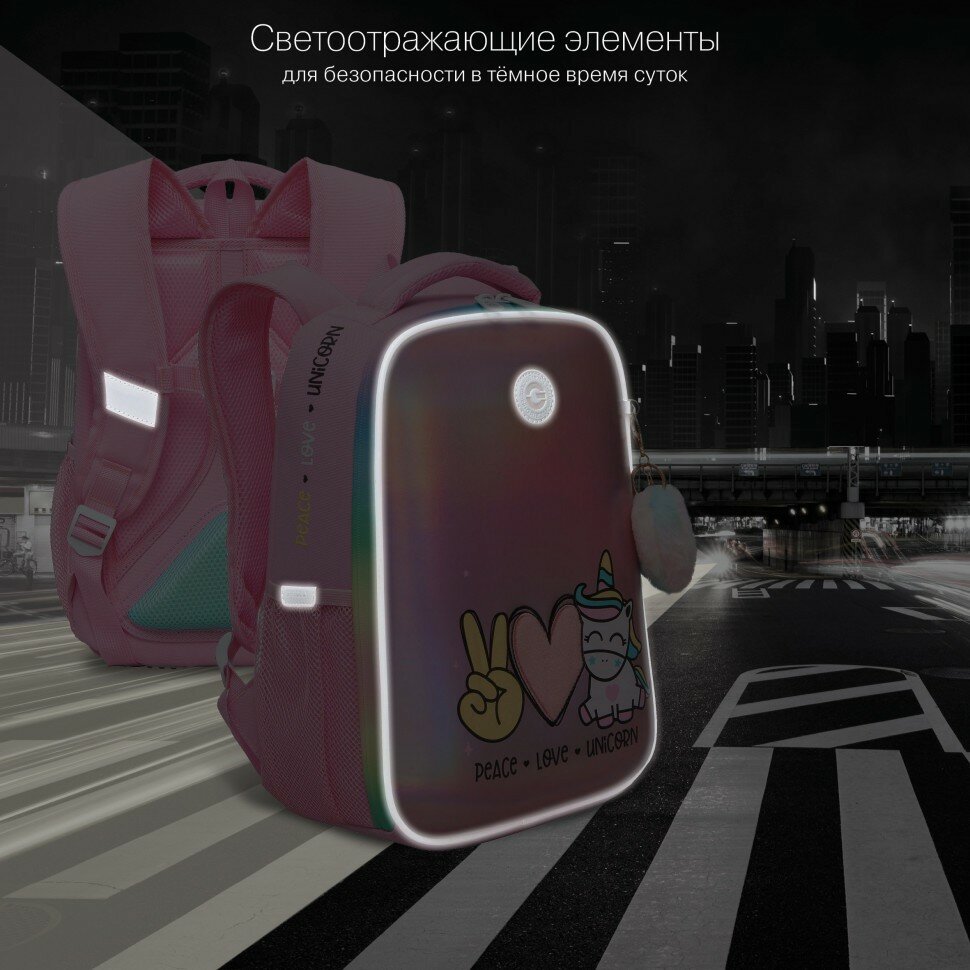 Grizzly Ранец школьный с анатомической спинкой, облегченный Unicorn RAw-396-6/2