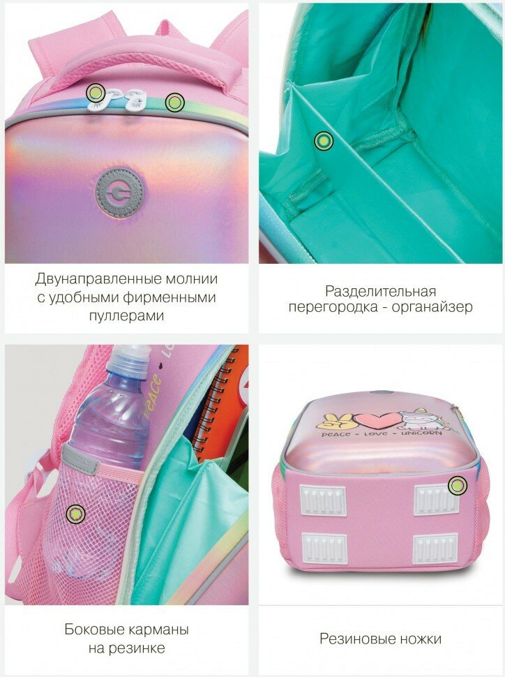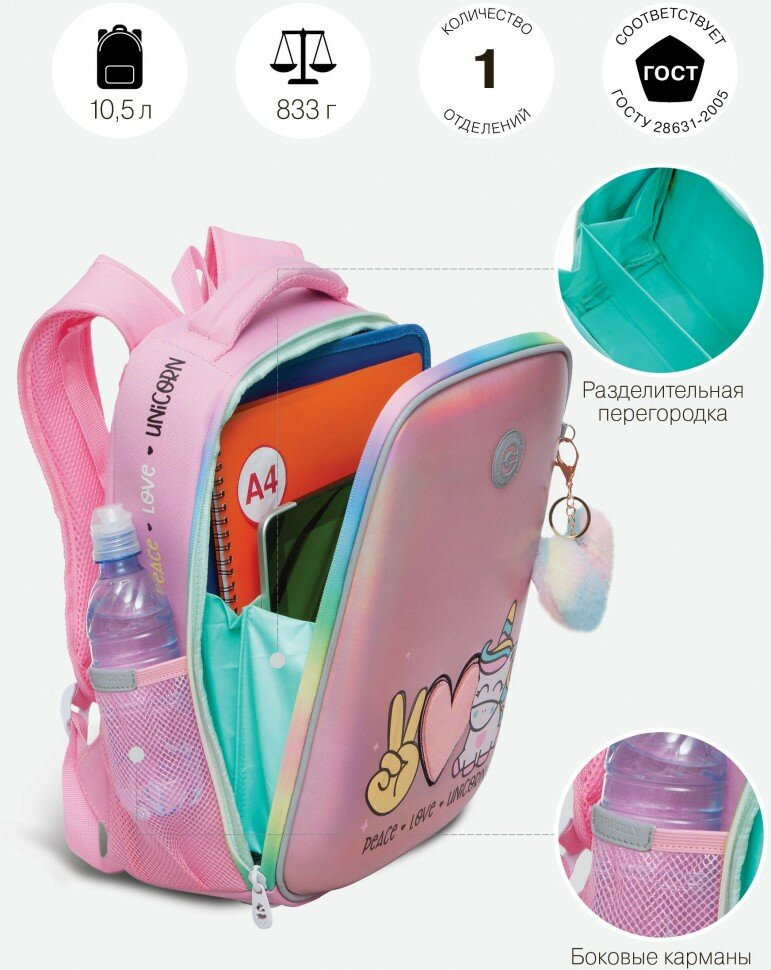 Ранец GRIZZLY анатомическая спинка, облегченный, для девочек, UNICORN, 37х26х16 см, RAw-396-6/2 интересное: