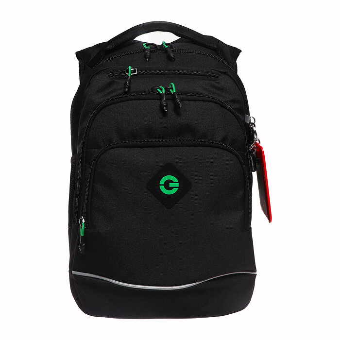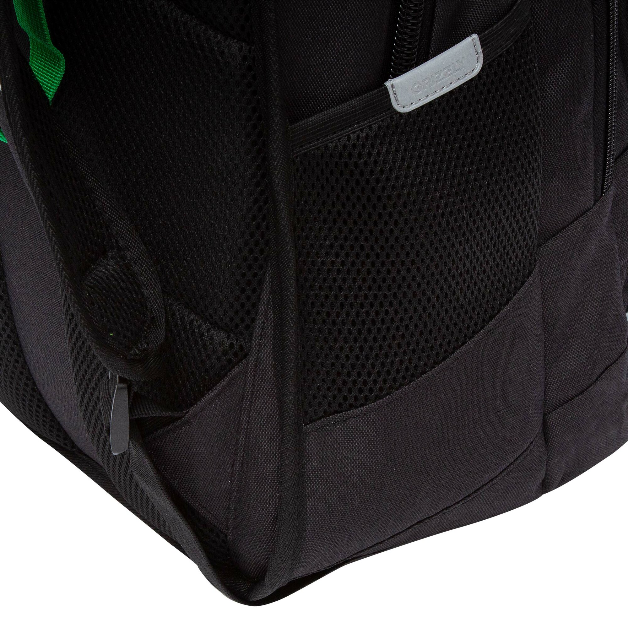 Рюкзак школьный, 40 х 25 х 22 см, Grizzly, эргономичная спинка, отделение для ноутбука, чёрный/зелён .