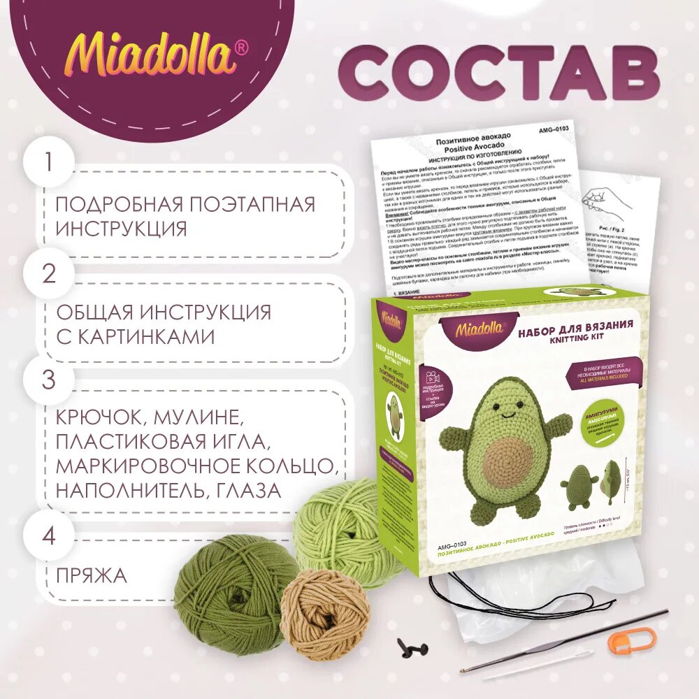 Набор для вязания Miadolla Позитивное авокадо amg-0103 интересное: