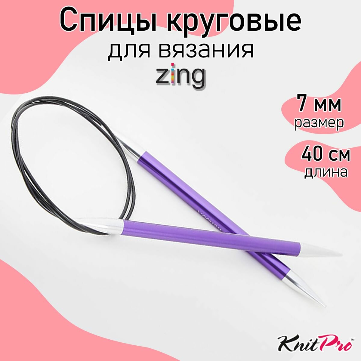47075 Knit Pro Спицы круговые для вязания Zing 7мм/40см, алюминий, аметистовый (фиолетовый)