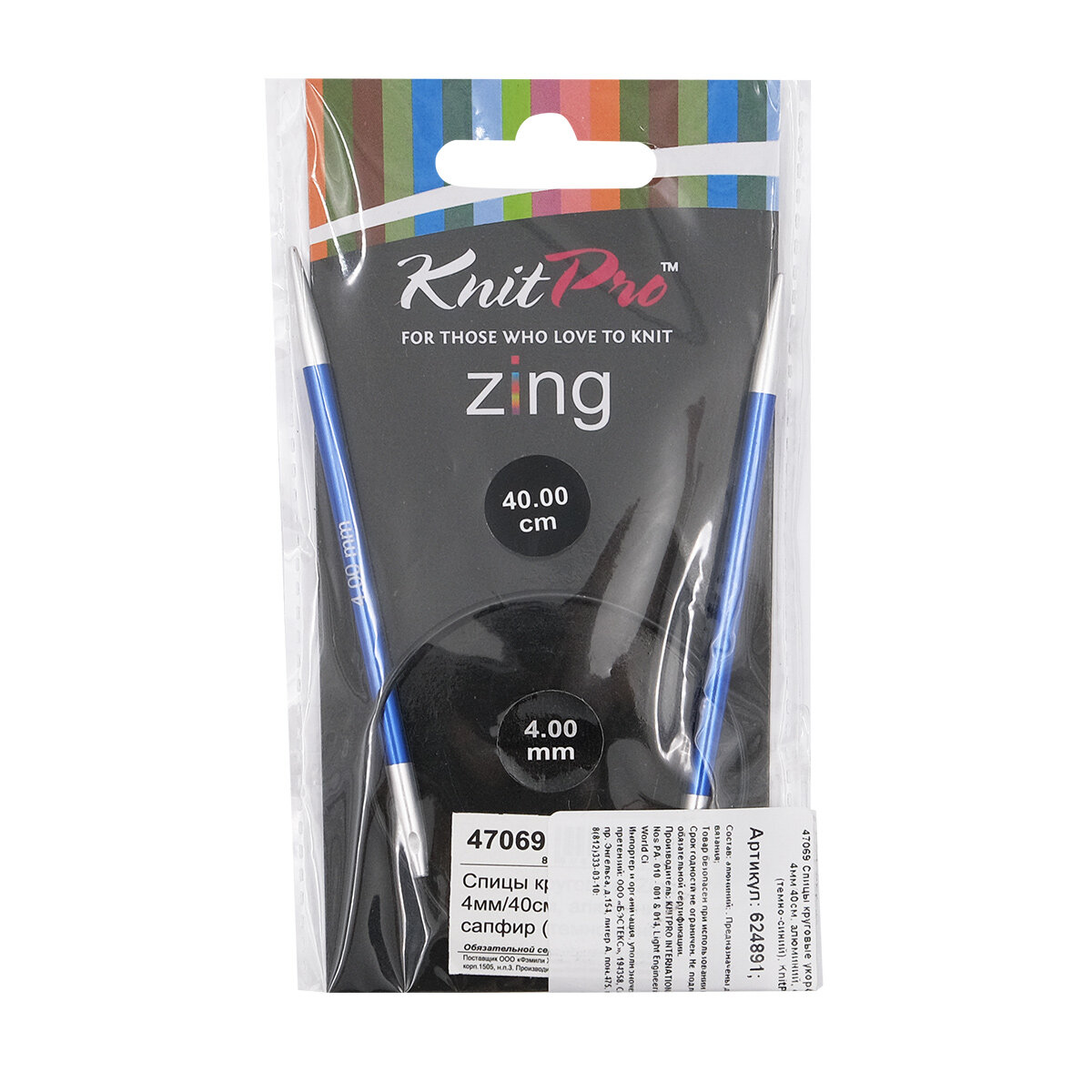 47069 Knit Pro Спицы круговые для вязания Zing 4мм/40см, алюминий
