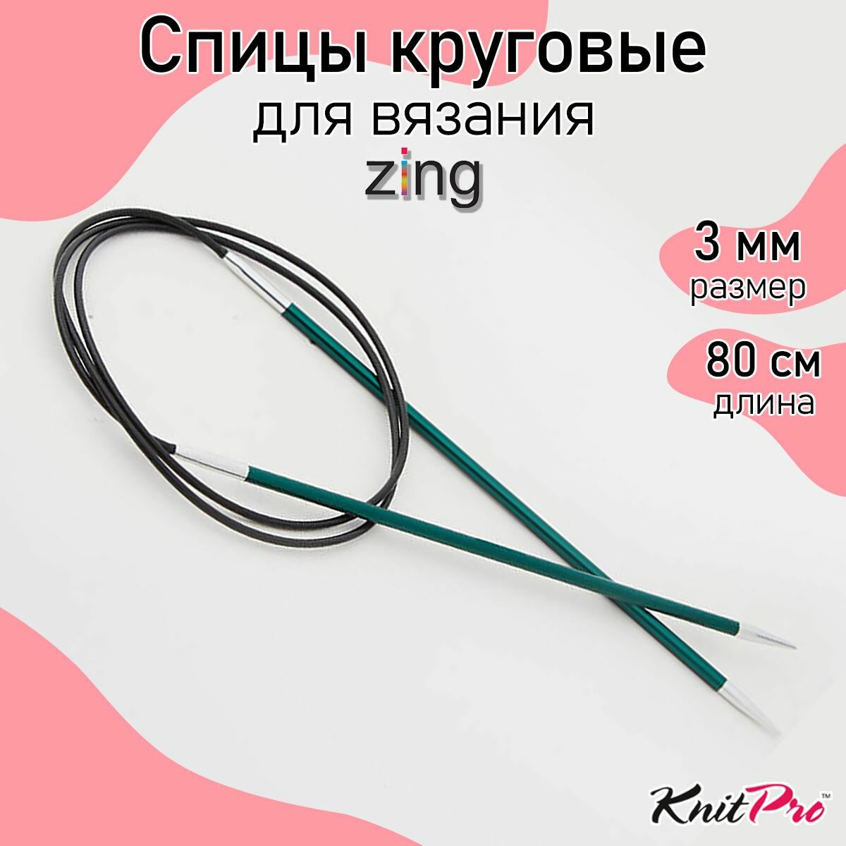 Спицы круговые Knit Pro Zing, 3,25 мм, 80 см, алюминий, изумрудный (KNPR.47126)